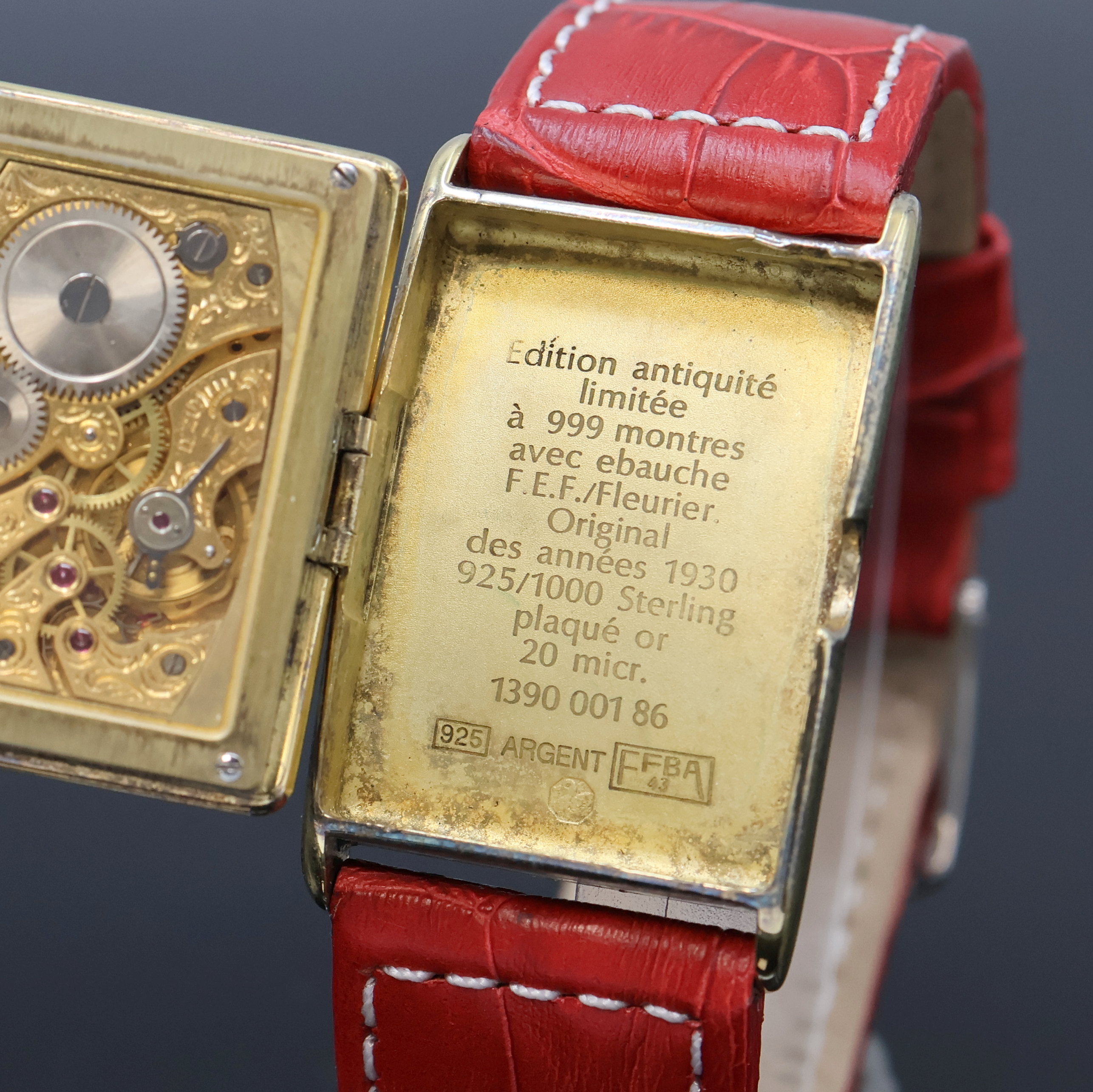 gefertigt, verg. Sterlingsilbergeh., Oberteil aufklappbar, silb. Zifferbl. m. gold.