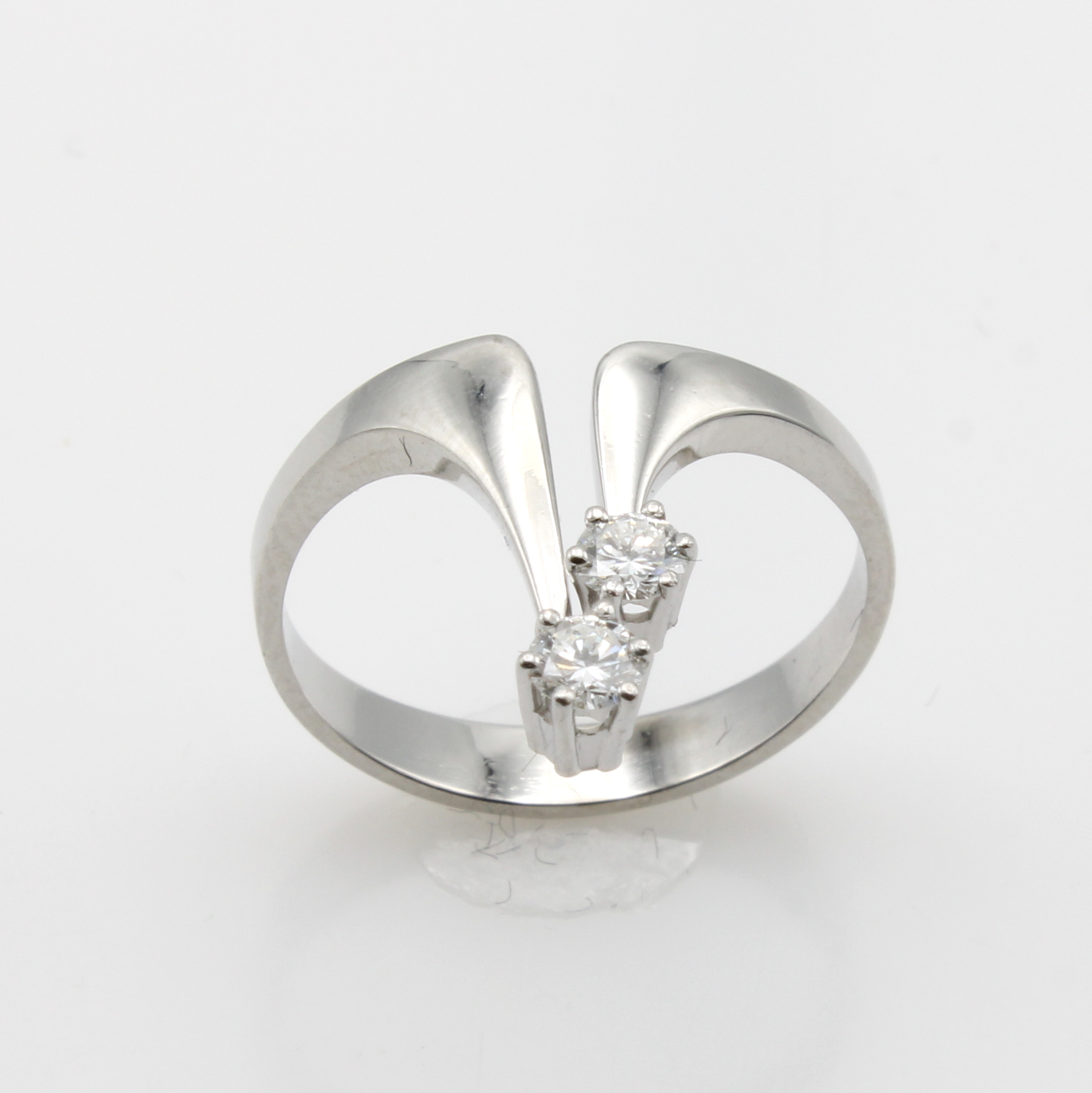 Ring mit Brillanten, WG 750/000, 2 Brill. zus. ca. 0.20 ct Weiß/si, l.get. Ringschiene, RW ca. 53 Schätzpreis: 1300, - EUR