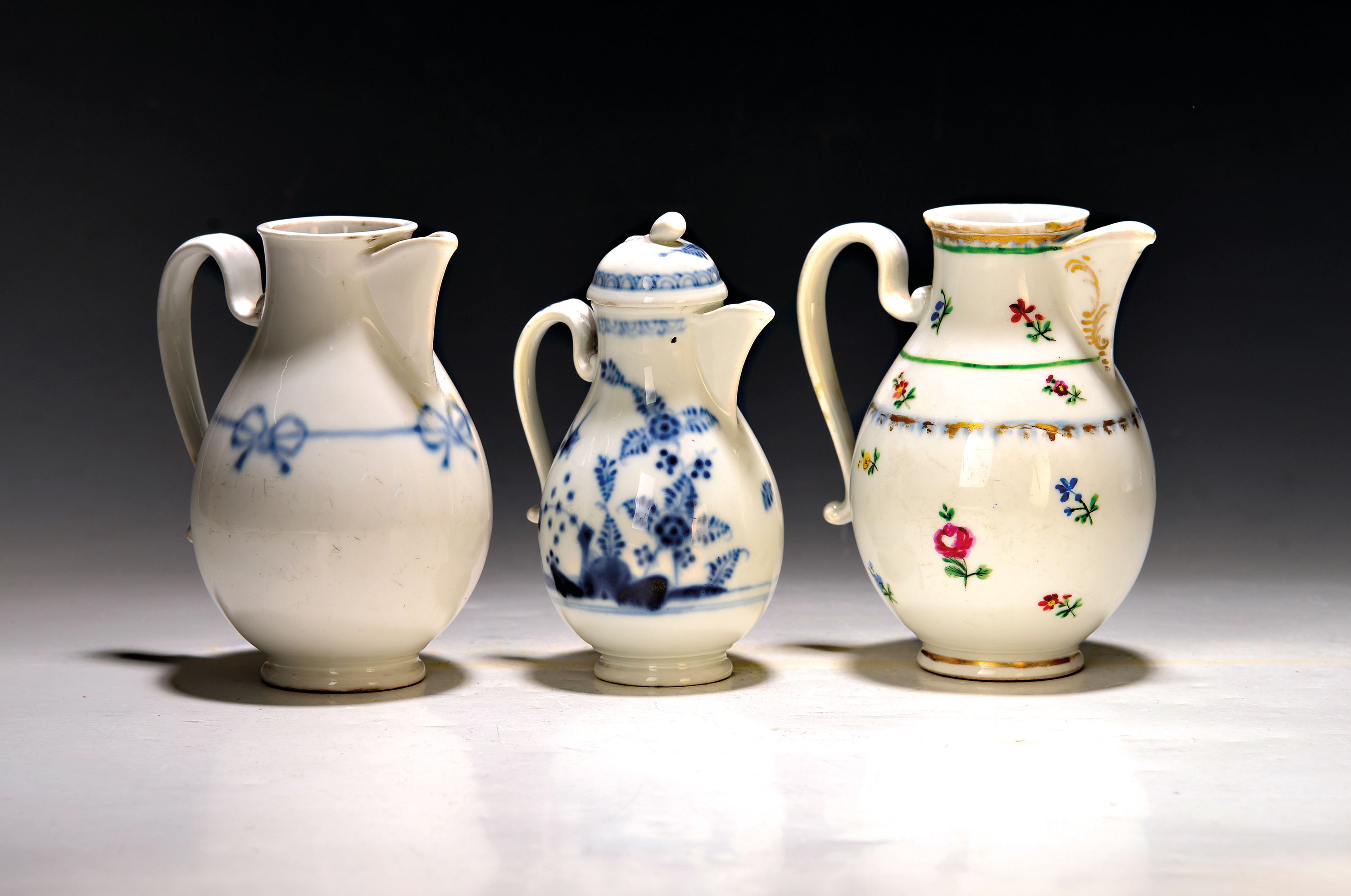 Drei Kannen, Wien, 18. Jh., Porzellan, Unterglasurbemalung, a. gestreute Blumen,