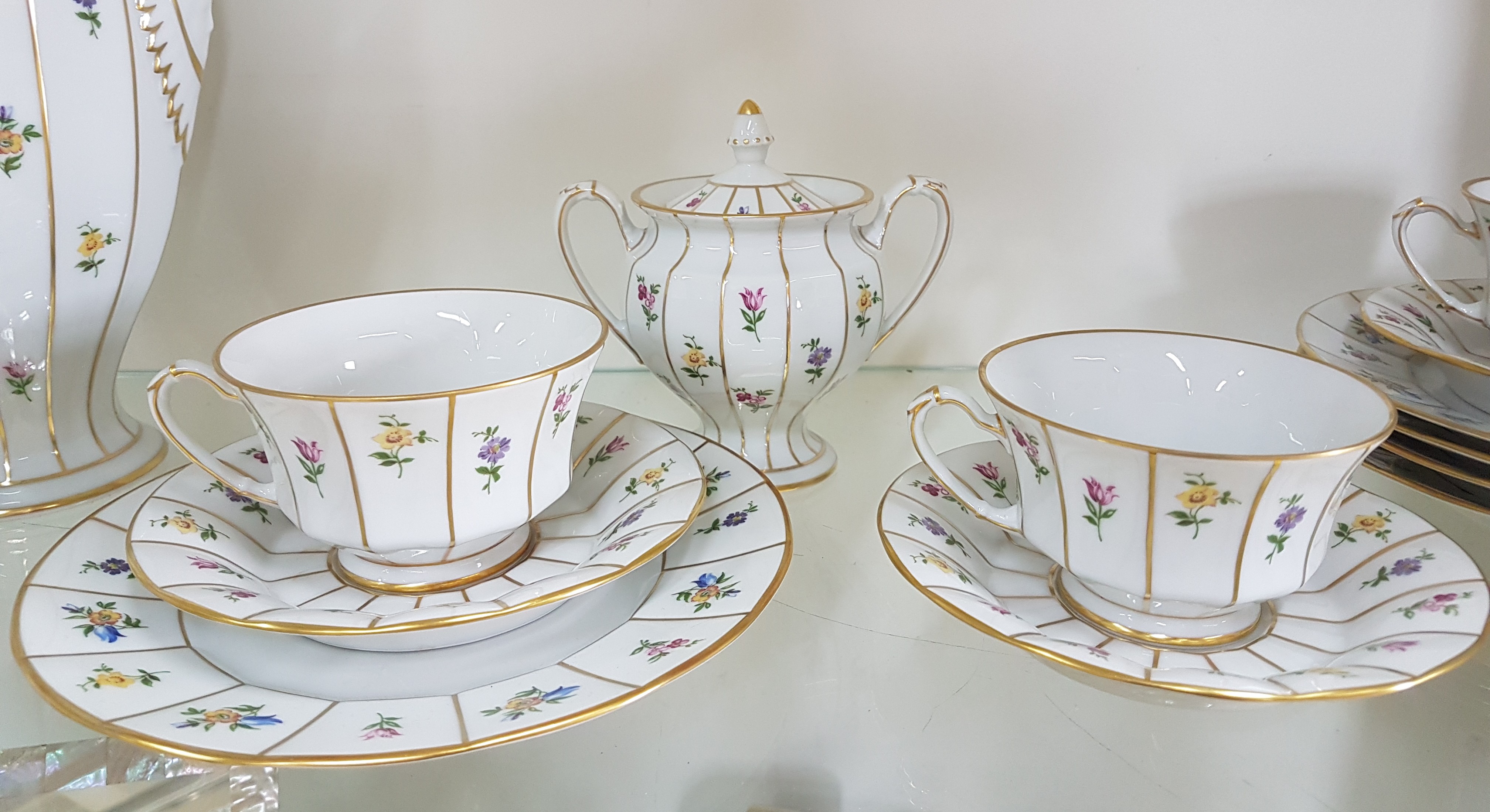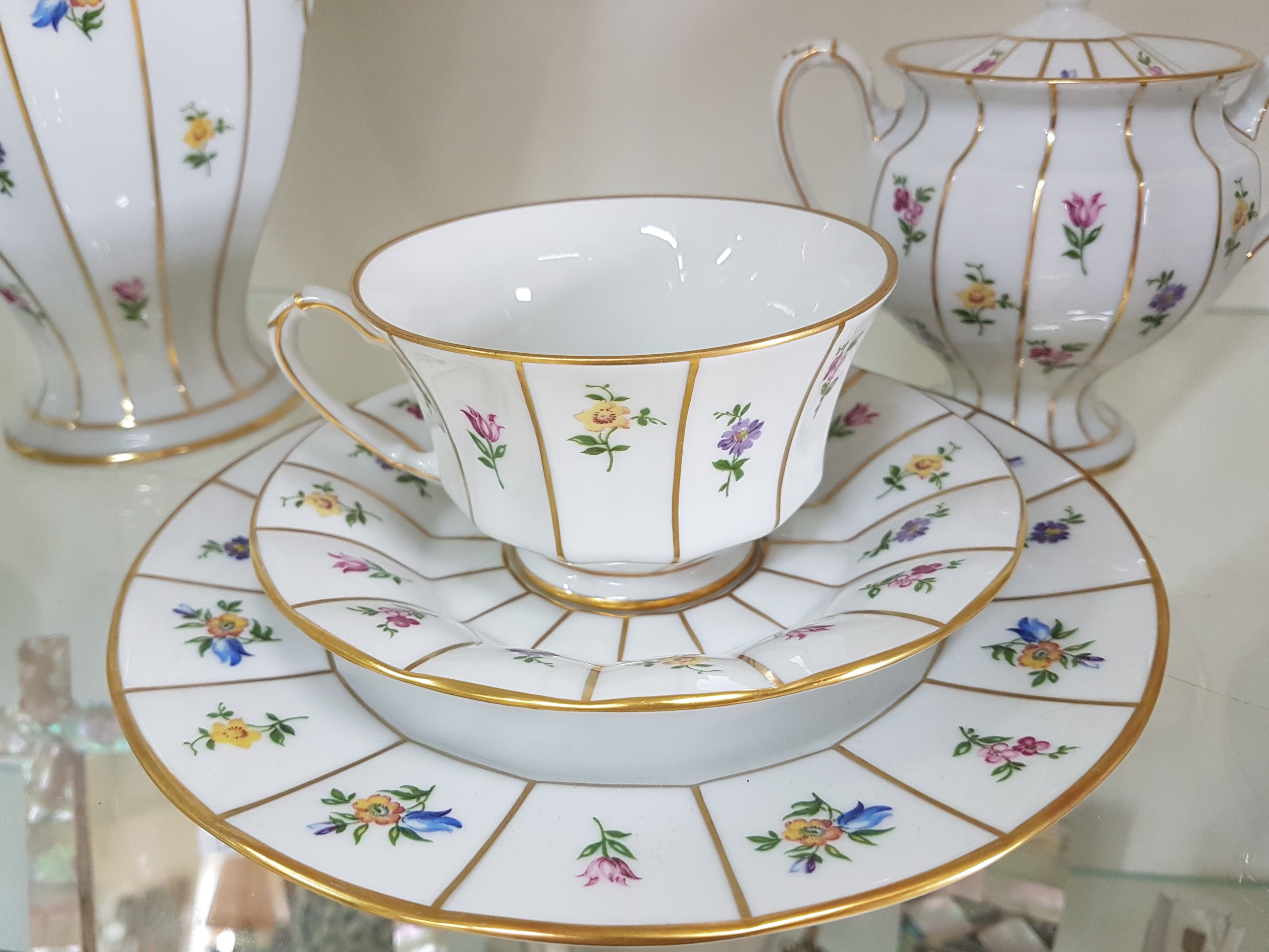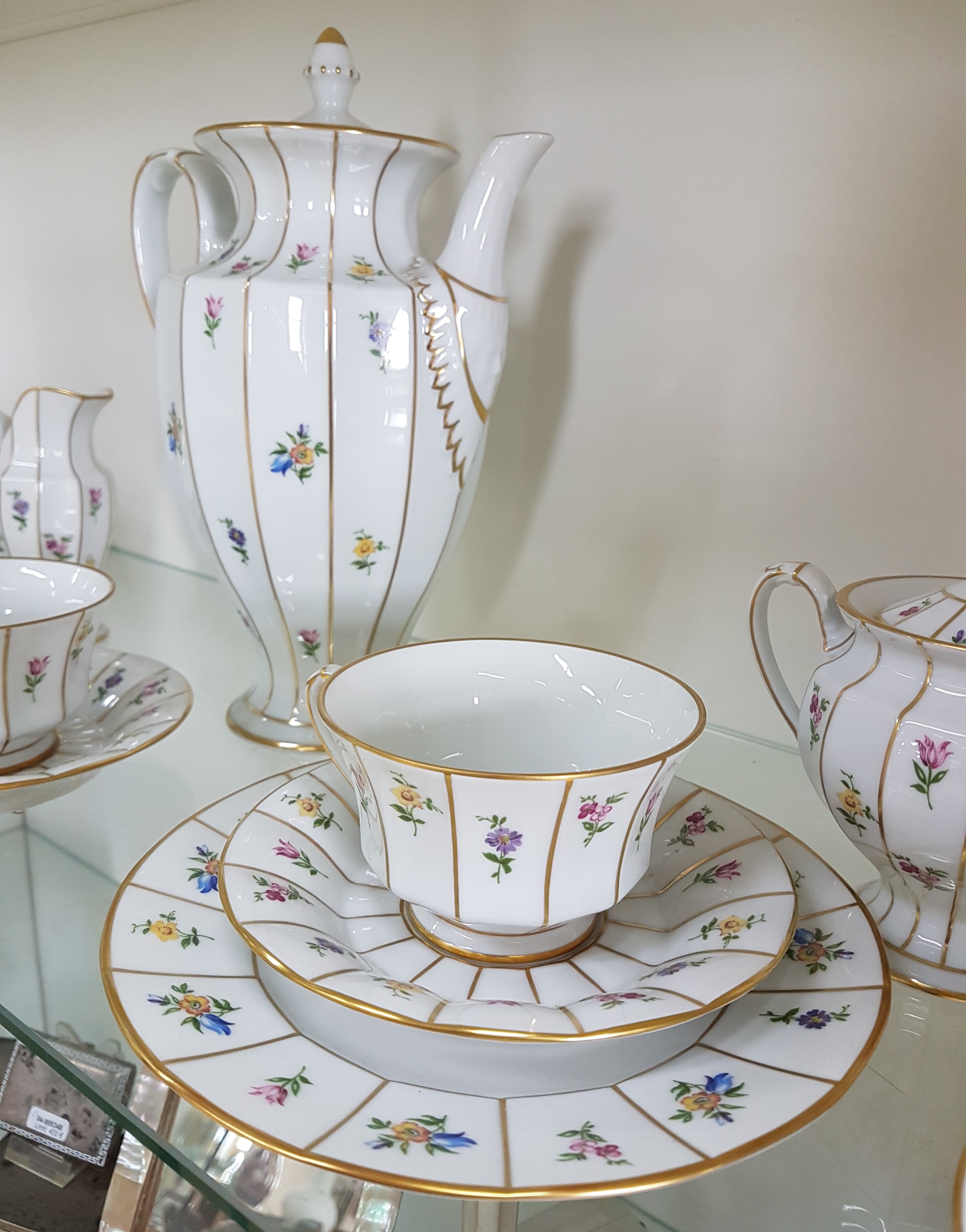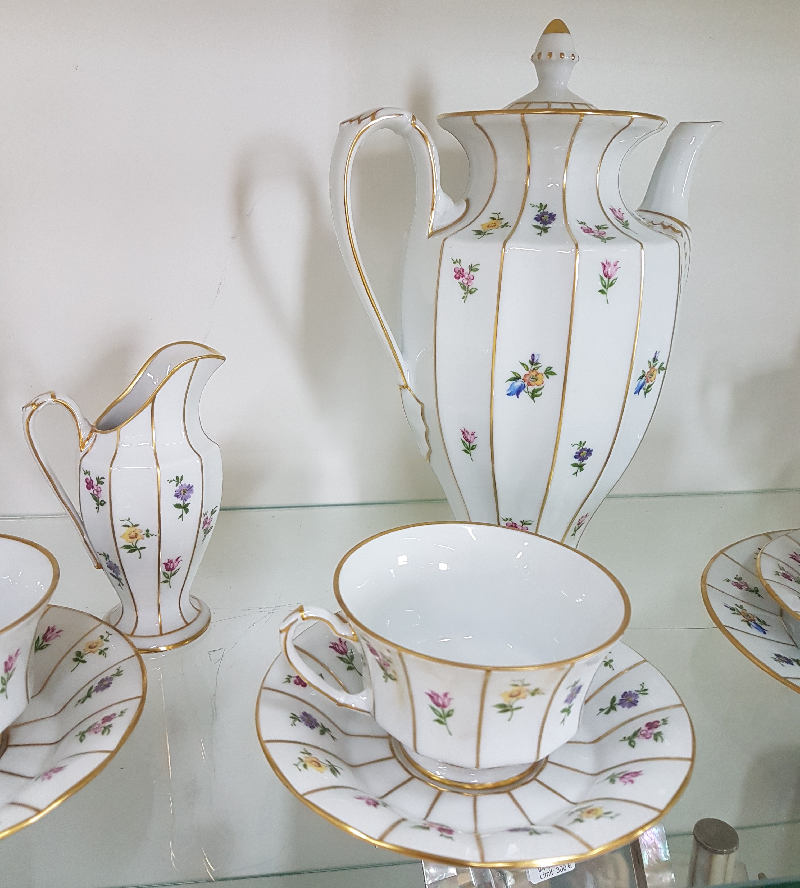 Kaffeeservice für 6 Personen, Form Greque mit Streublumen, Fürstenberg, 20.Jh.,