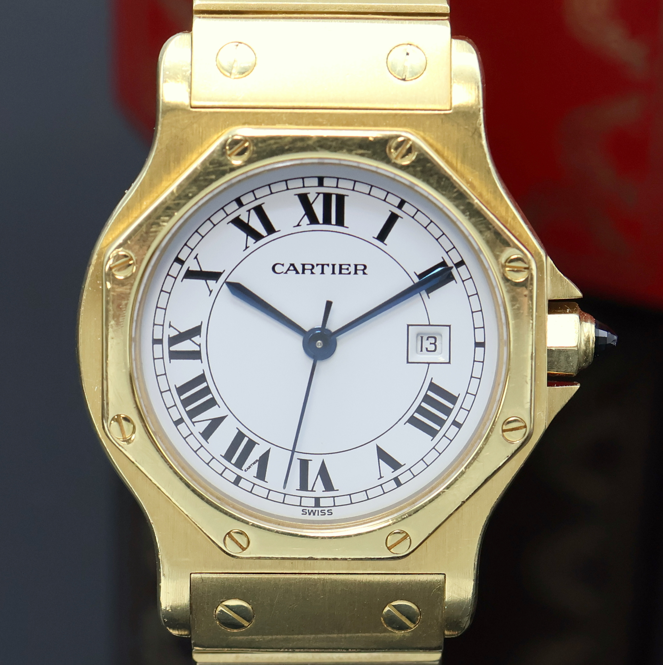 CARTIER Santos Octagon 18k yellow gold wristwatch, self winding, solid gold case