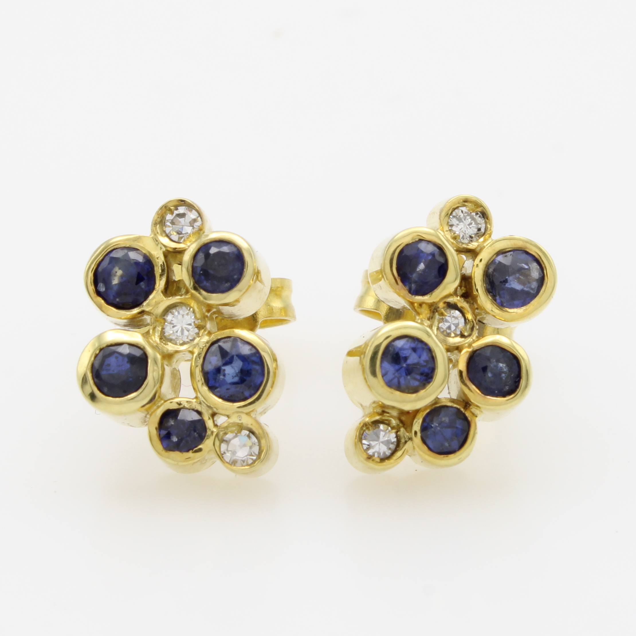 Paar Ohrstecker mit Saphiren und Brillanten, GG 585/000, 10 Saphire zus. ca. 1.7 ct, 6 Brill. zus. ca. 0.08 ct Braun/si Schätzpreis: 2680, - EUR