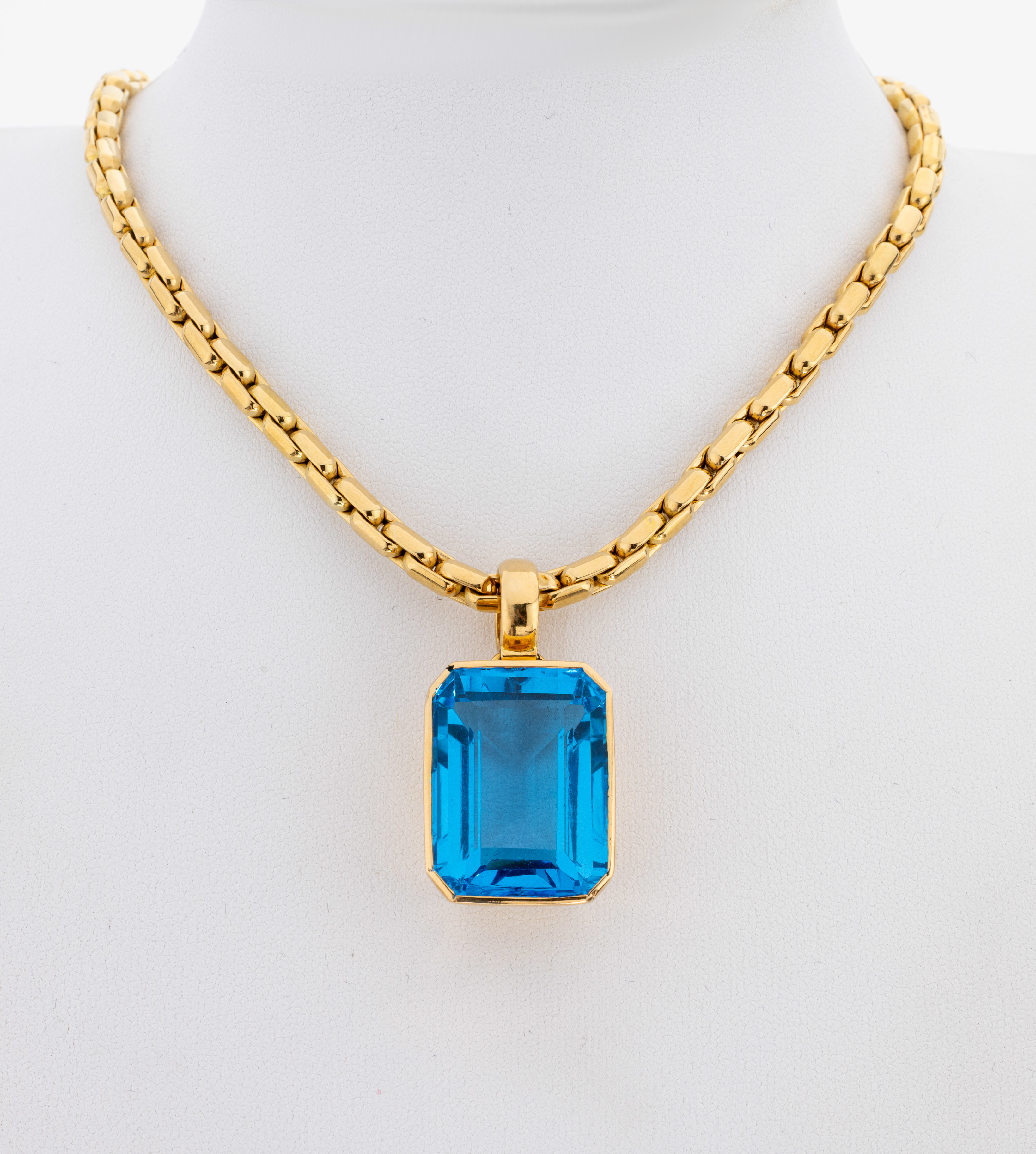 18 kt Gold Topas-Anhänger, GG 750/000 gepr., Blautopas (beh.) im Treppenschliff