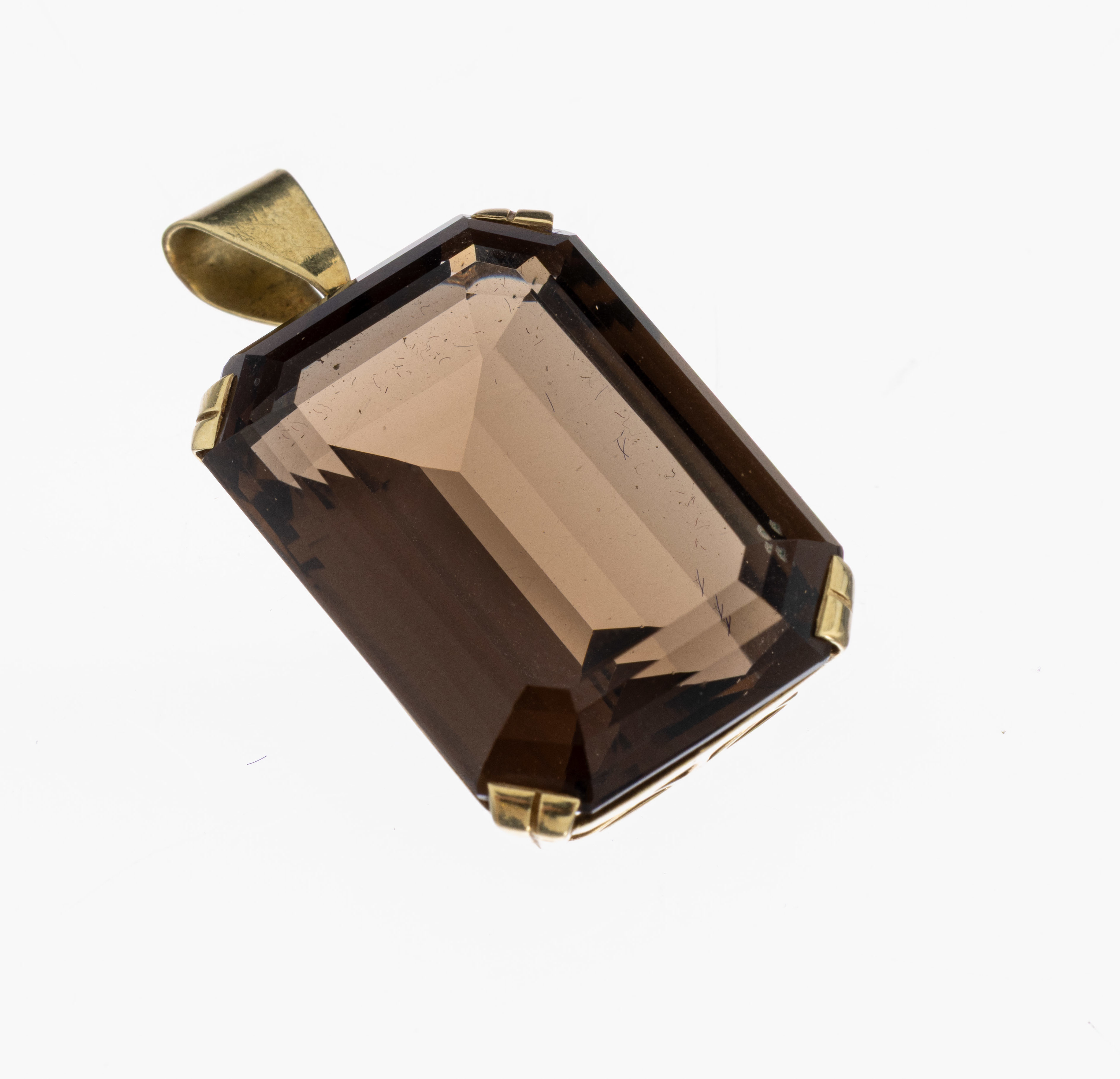 14 kt gold smoky quartz pendant , 1950s, YG 585/000, bevelled quartz approx. 23 ct,
