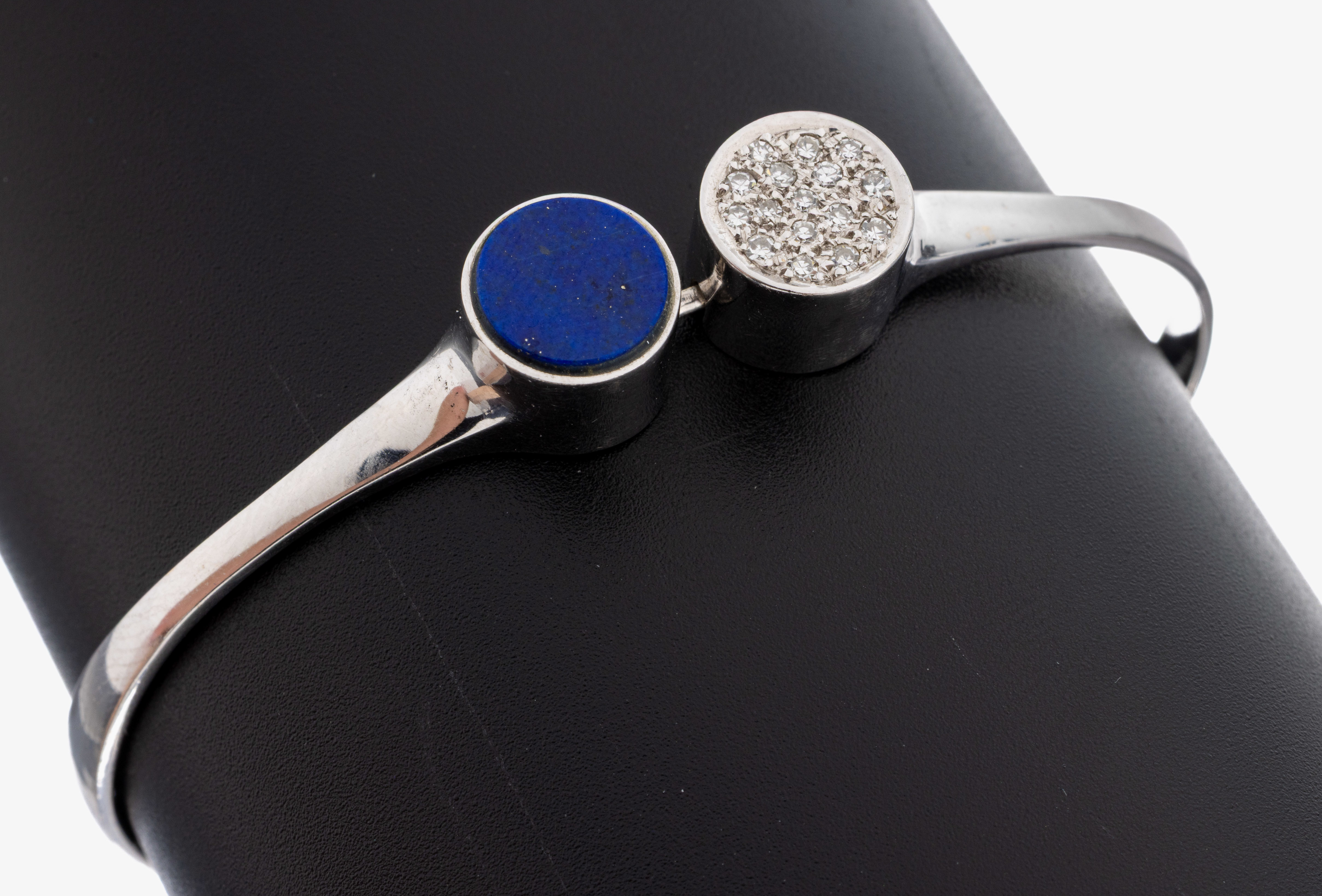 18 kt Gold Lapislazuli-Diamant-Armreif, WG 750/000, runde Lapislazuli-Scheibe, 16