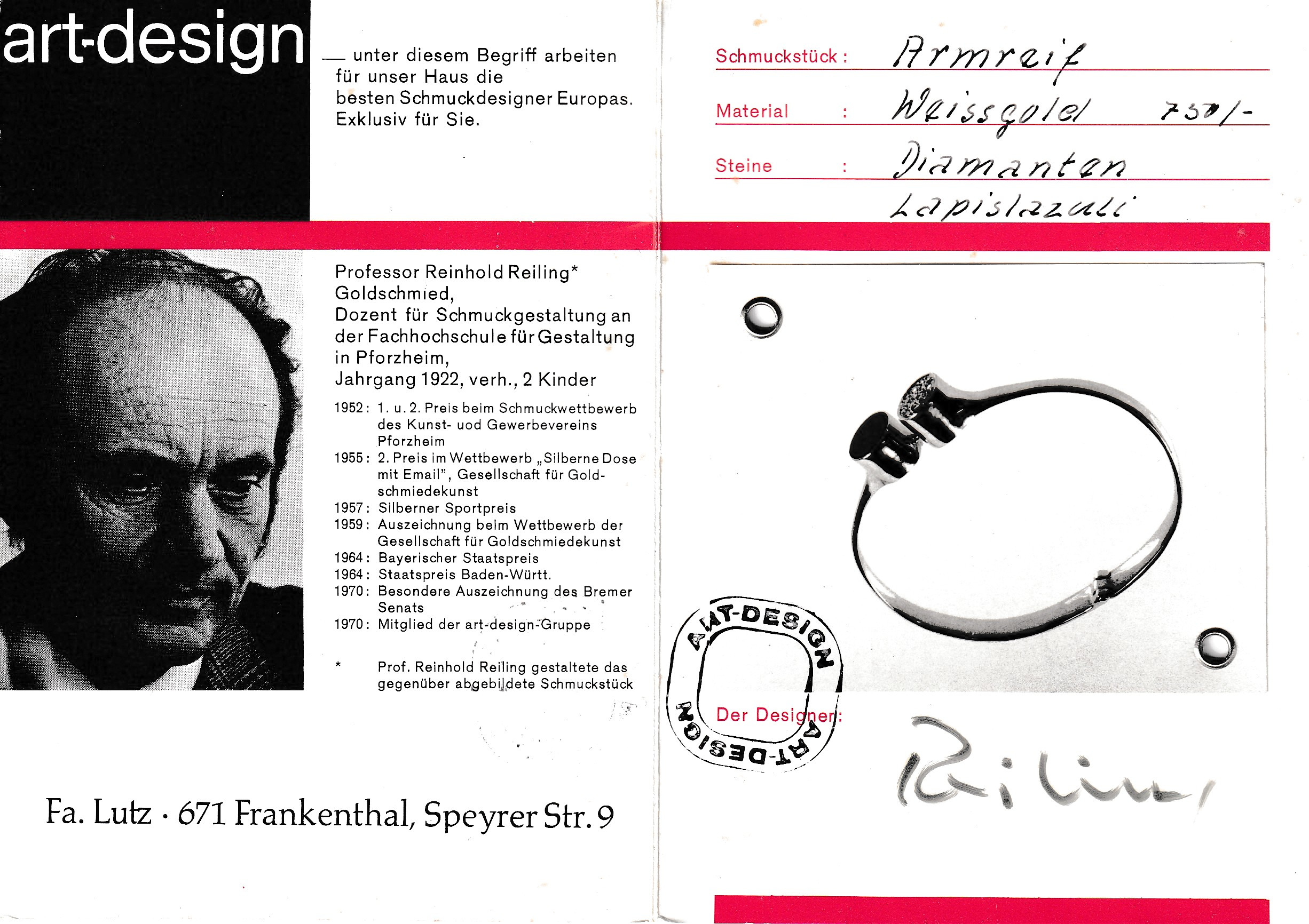 g, Entwurf Prof. Reiling, Dozent für Schmuckgestaltung ander Fachhochschule in Pforzheim
