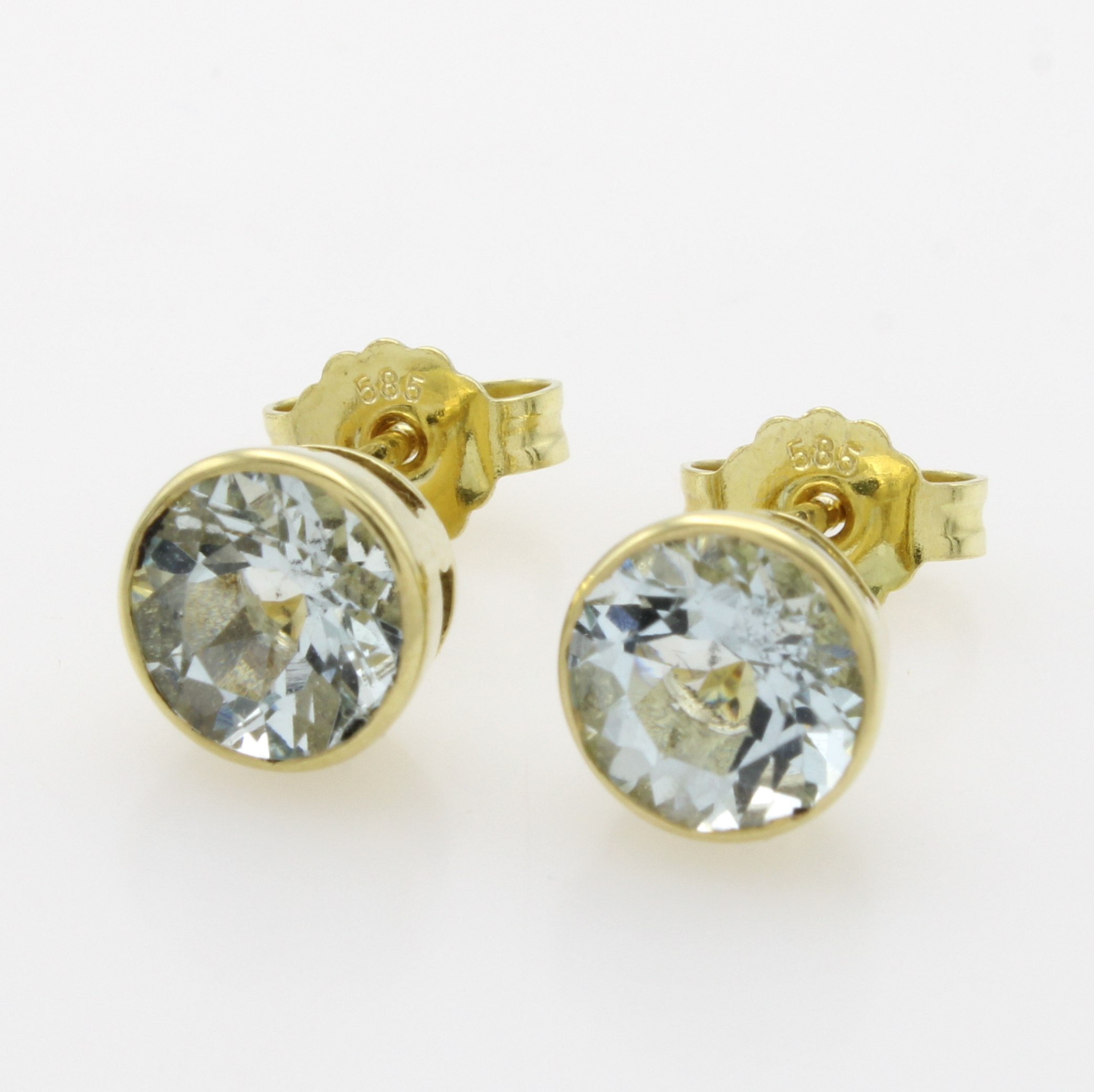 Paar Ohrstecker mit Aquamarinen, GG 585/000, 2 Aquam. in Zargenfassungen zus. ca. 2.2 ct Schätzpreis: 1480, - EUR