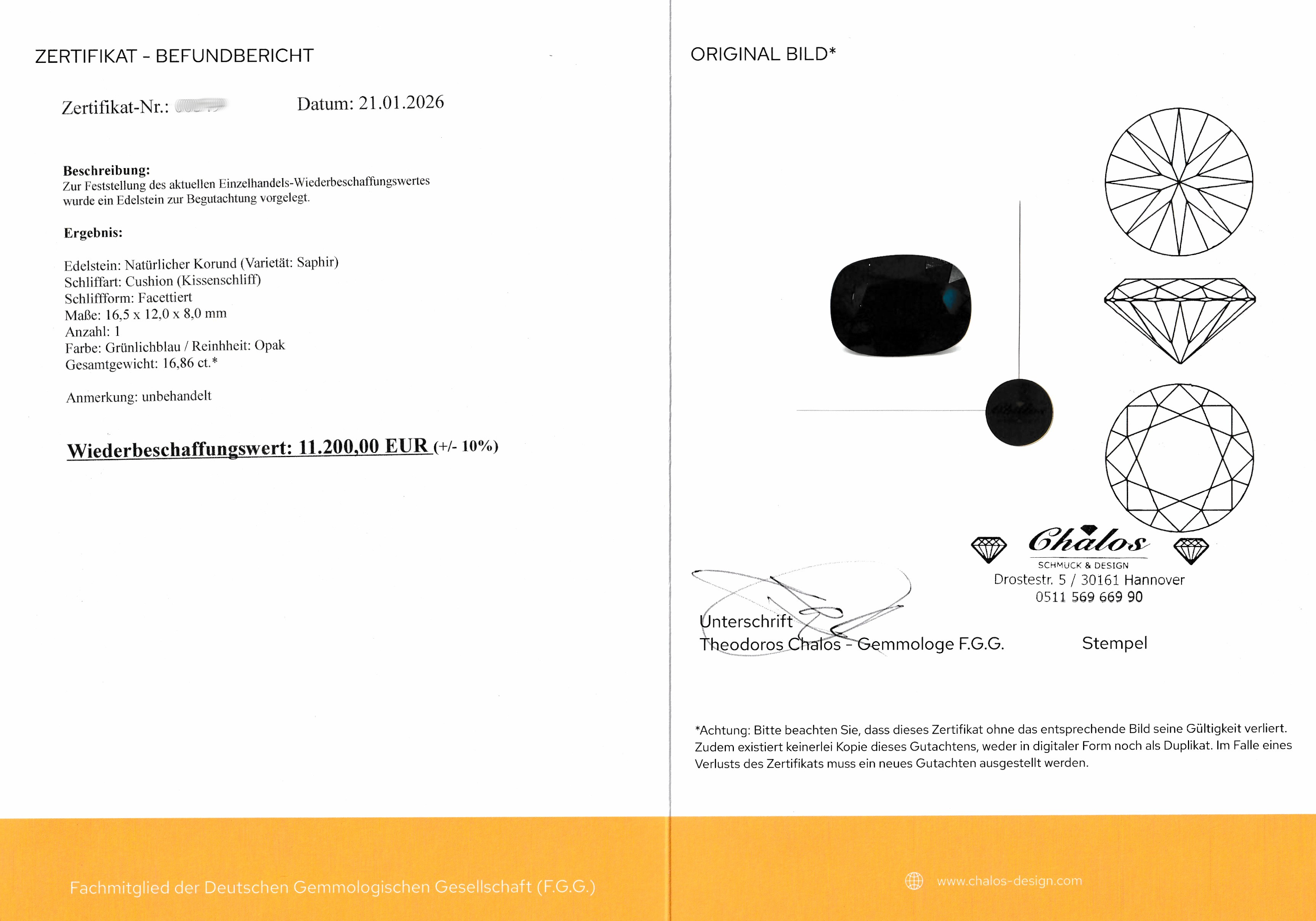 GIA- Expertise anbei, keine Anzeichen für Erhitzung, Wertgutachten über 11200 Euro