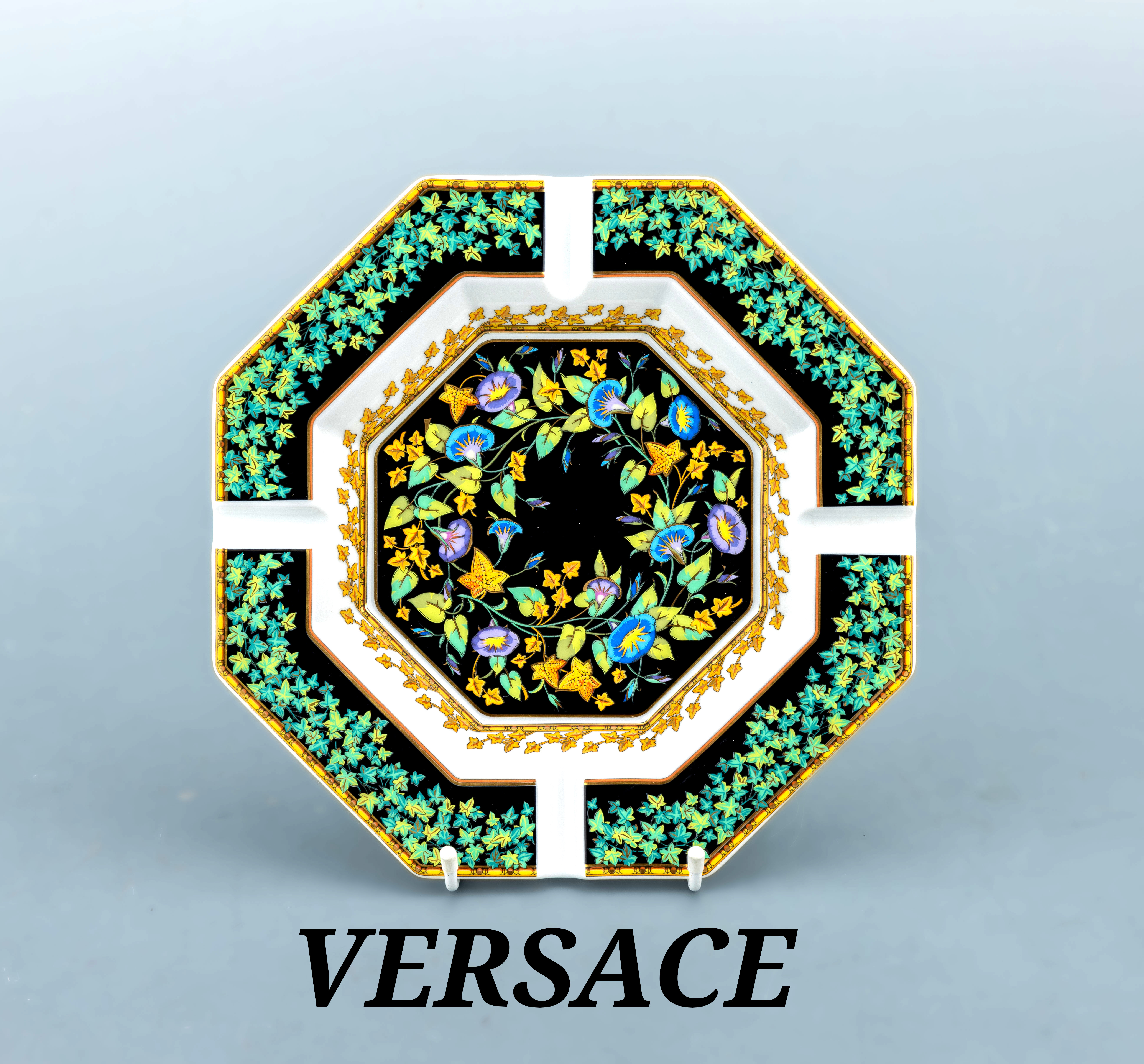 Rosenthal VERSACE ashtray , "Gold Efeu", ground white, with ivy leaves in different