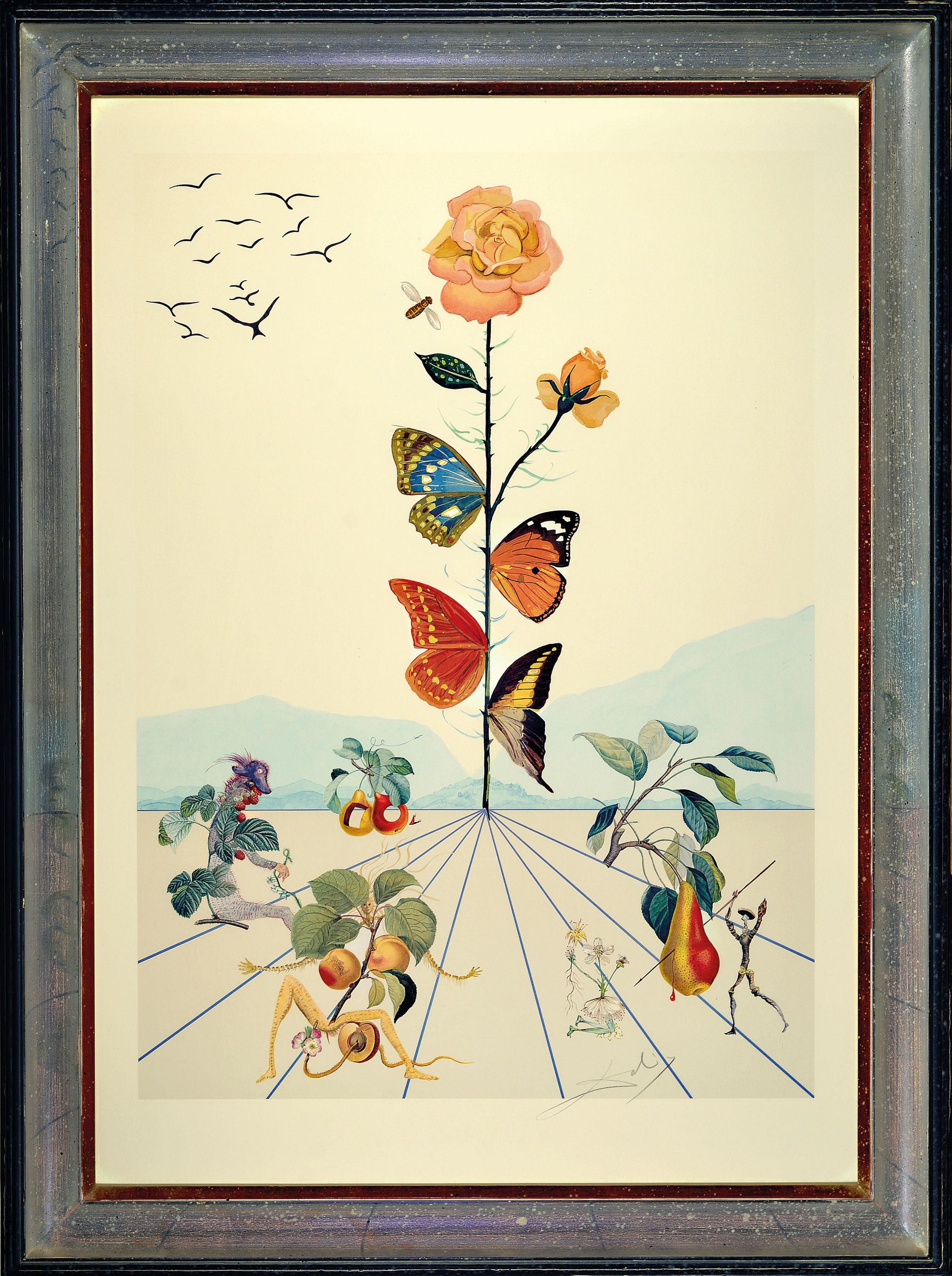 Salvador Dali,1904-1989, Flordali II, Schmetterlingsrose, 5000 Ex. auf festem Papier,