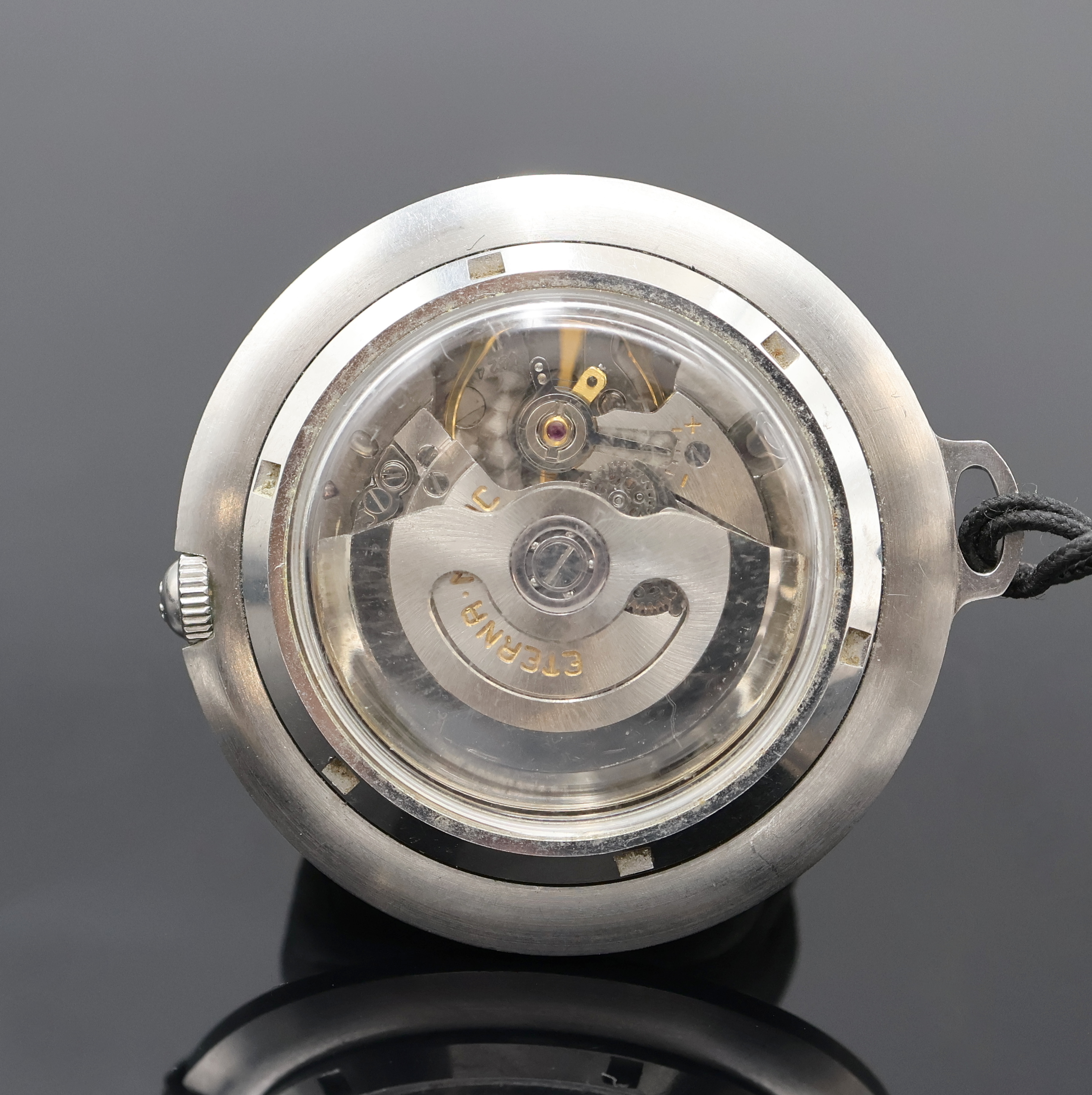 ETERNA-MATIC Golfer Taschenuhr in Stahl, Schweiz um 1960, Automatik, beids. vergl.