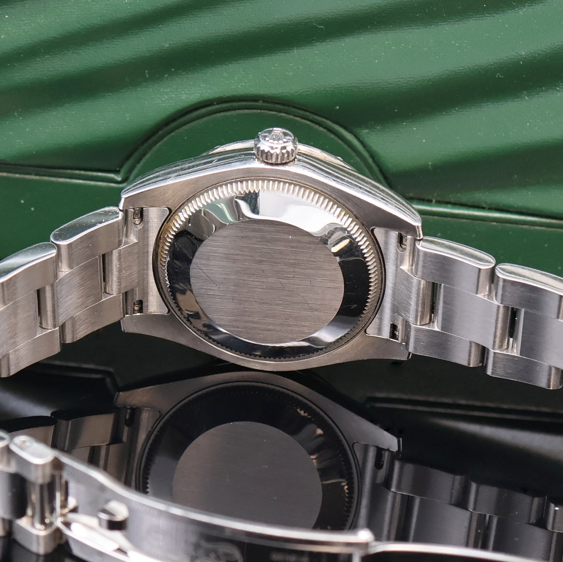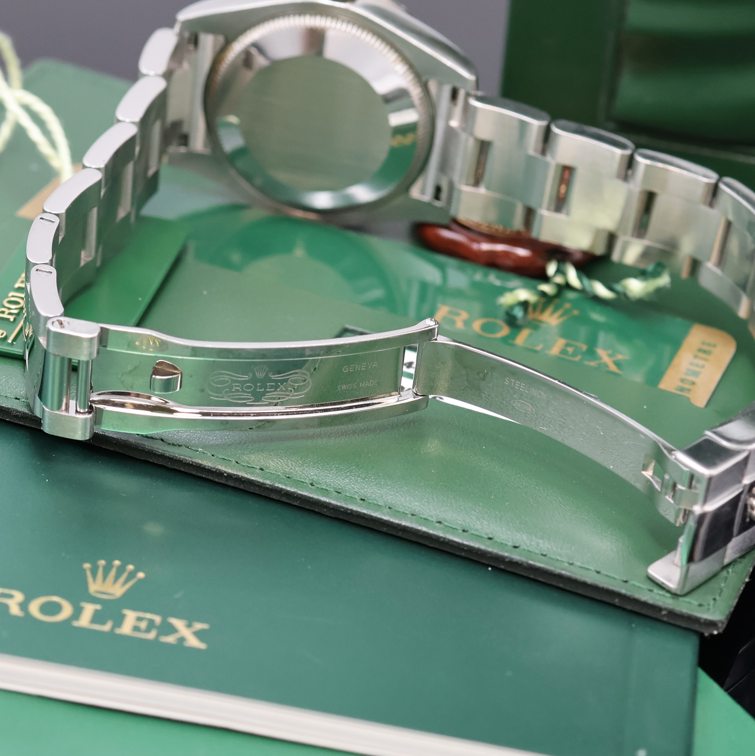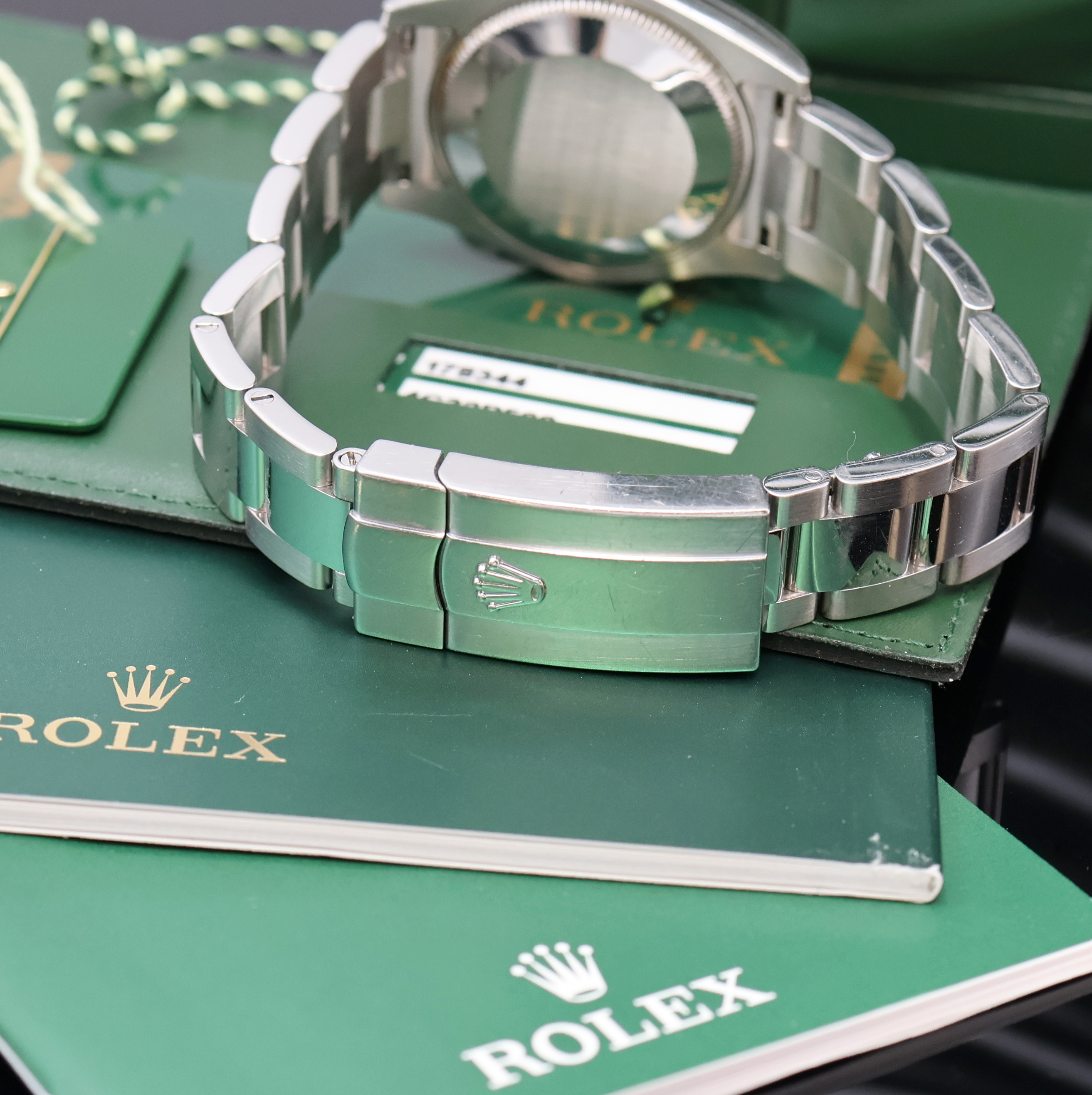 ROLEX Armbanduhr Oyster Perpetual Datejust 31 Referenz 178344, Automatik, LC 100, Edelstahlgeh. inkl. Oysterband m. Faltschl., Boden und Krone verschr., ab Herst. wasserd., WG-Lünette m. 24 Brillanten, weißes Zifferbl. m. röm. Std., Anz. v. Std., Min., Zentralsek. und Datum unter Saphirlupenglas, D. ca. 31 mm, L. ca. 20 cm, orig. Etui, Hangtag und Papiere, demnach gek. 12/2010, Nutzsp. altersbed., EZG 2-3, EZW 2