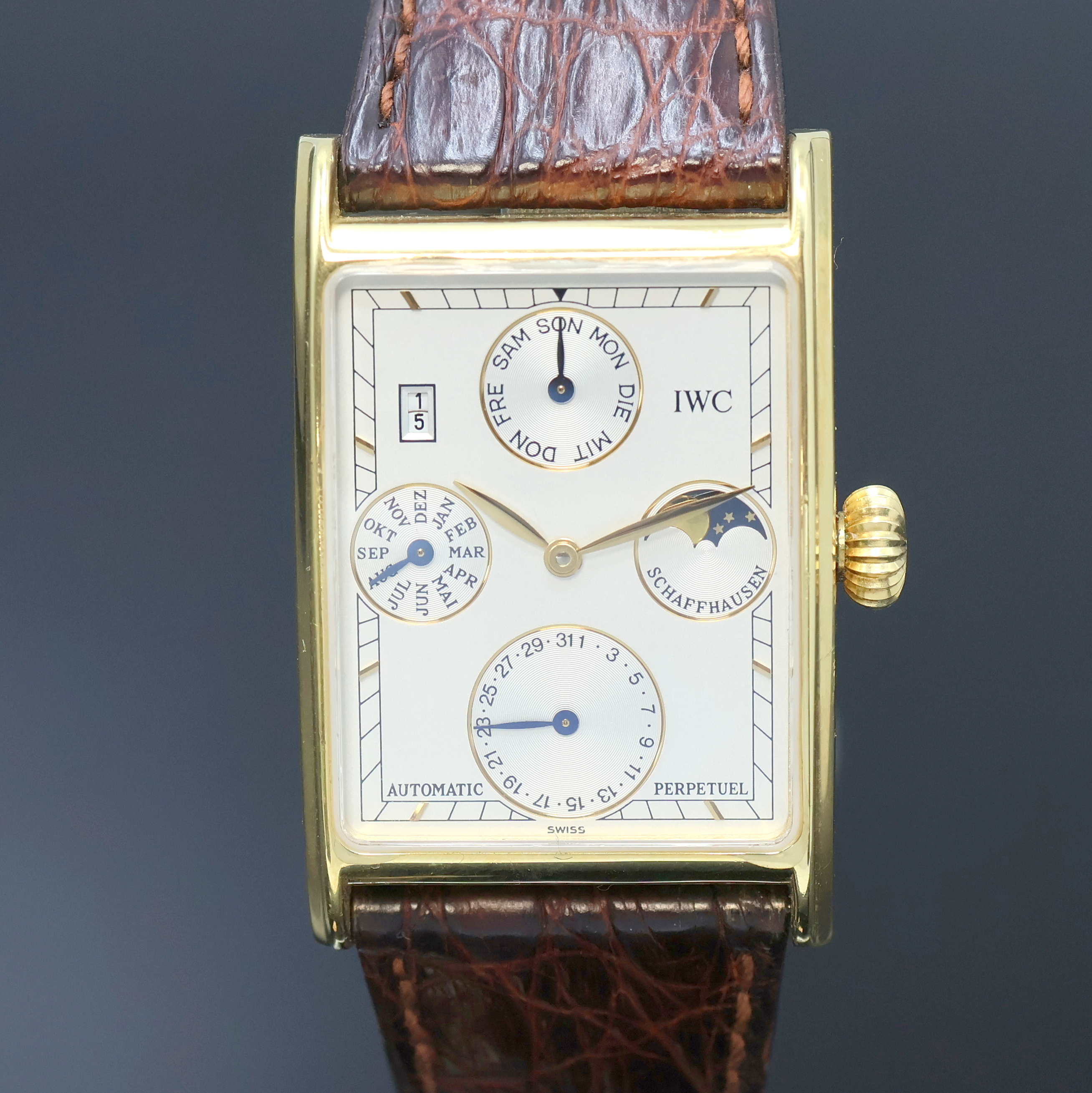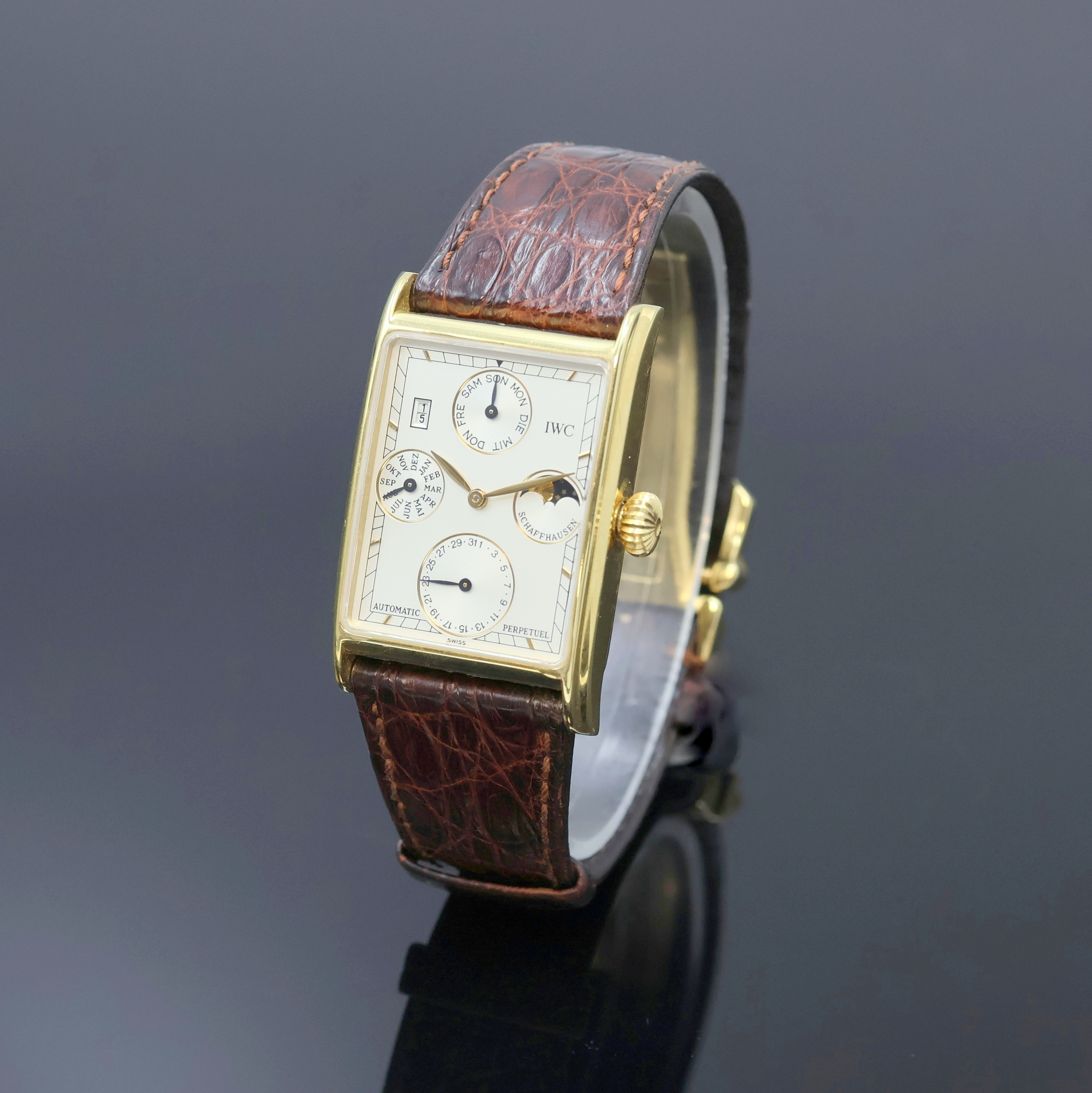 IWC feine astronomische Herrenarmbanduhr mit ewigem Kalender Modell Novecento in