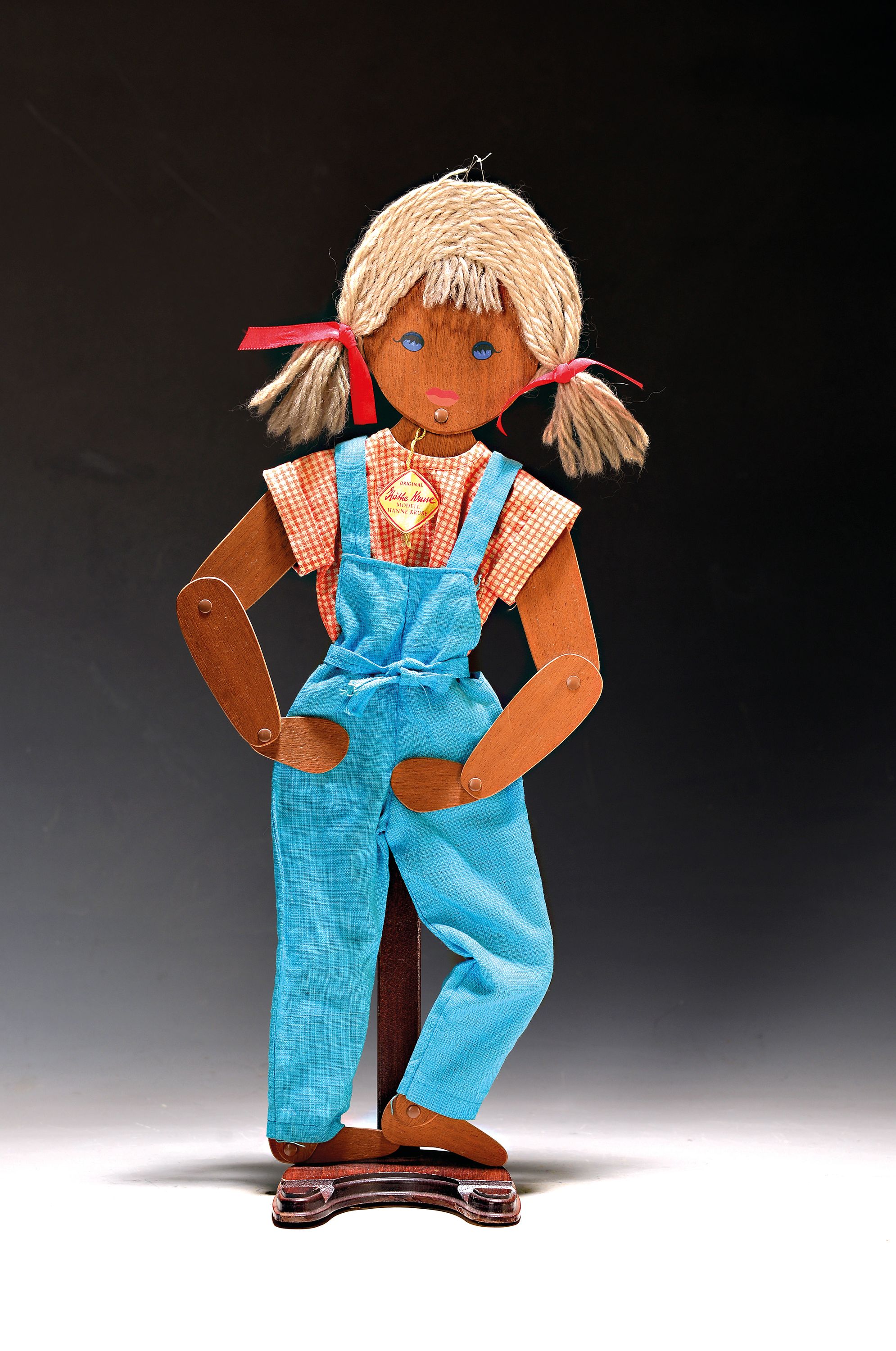Wolle, bemaltes Gesicht, orig. Kleidung, orig. Hängeetikett, Höhe 45cm, zum Aufhängen,