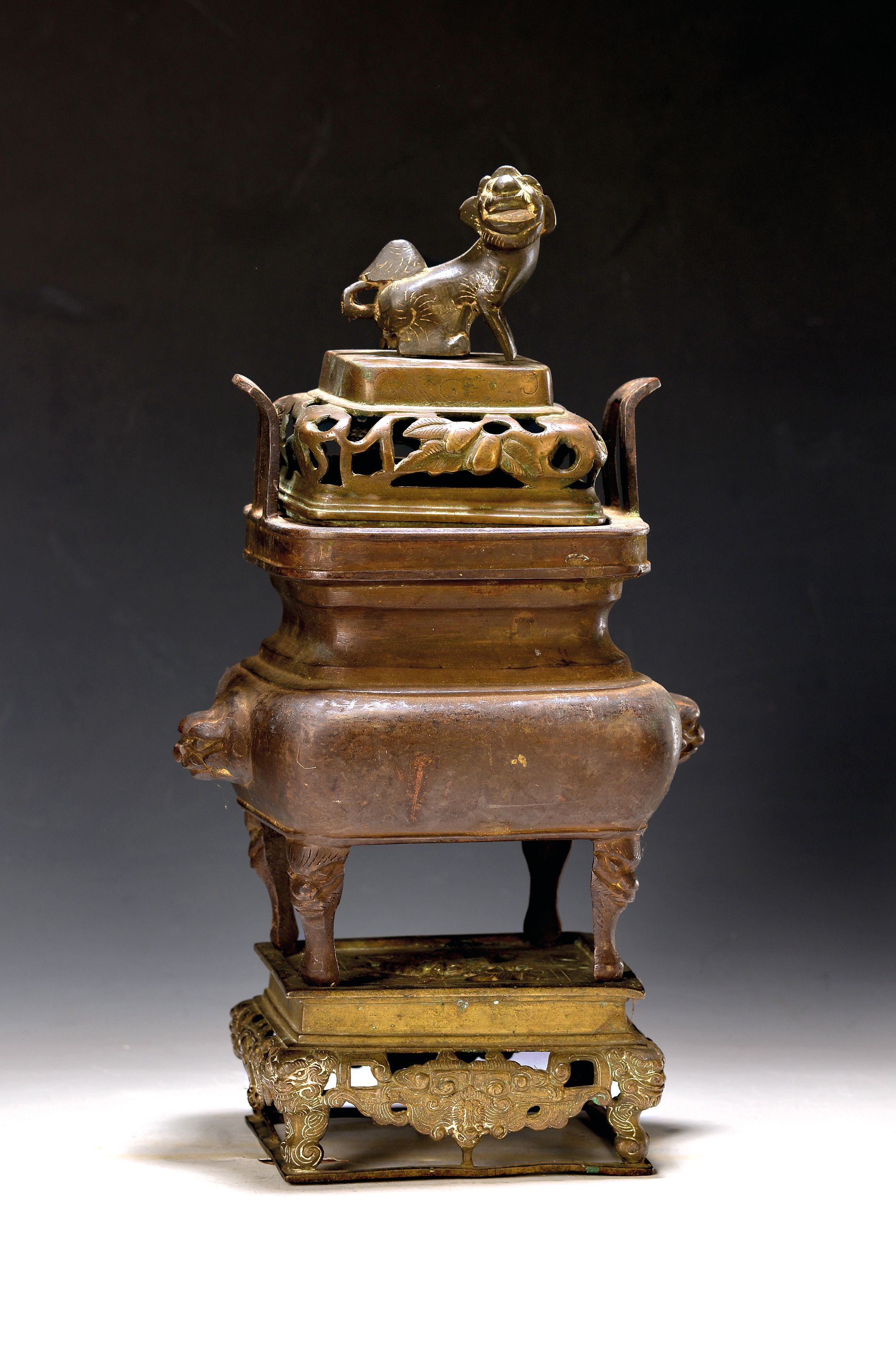 Koro, Japan, wohl Meiji-Periode um 1900, Räuchergefäß aus Bronze, Deckel in Form