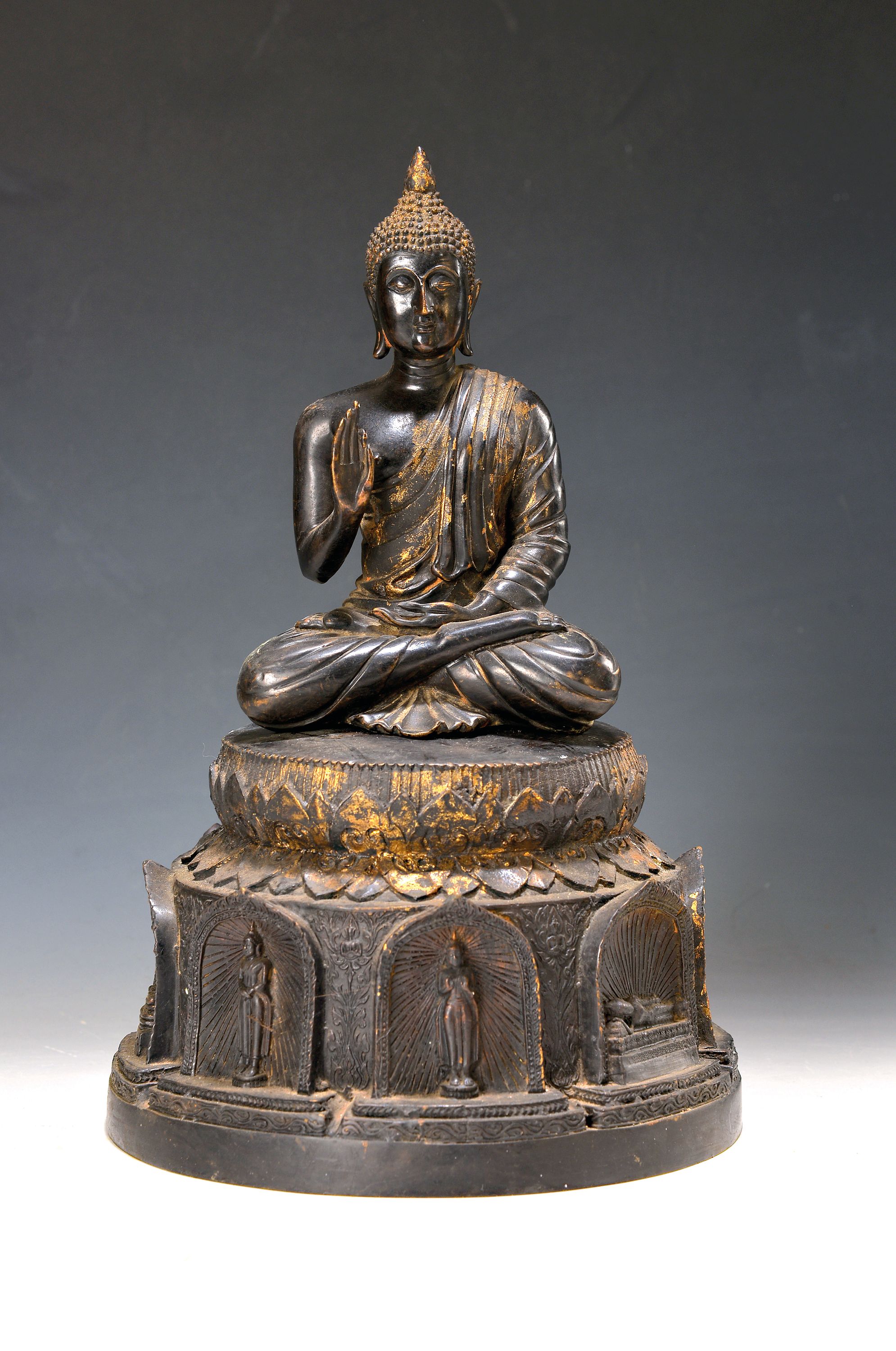 Sitzender Buddha auf Lotusthron, wohl Burma, 20. Jh., Abhaya Mudra, Geste der Furchtlosigkeit
