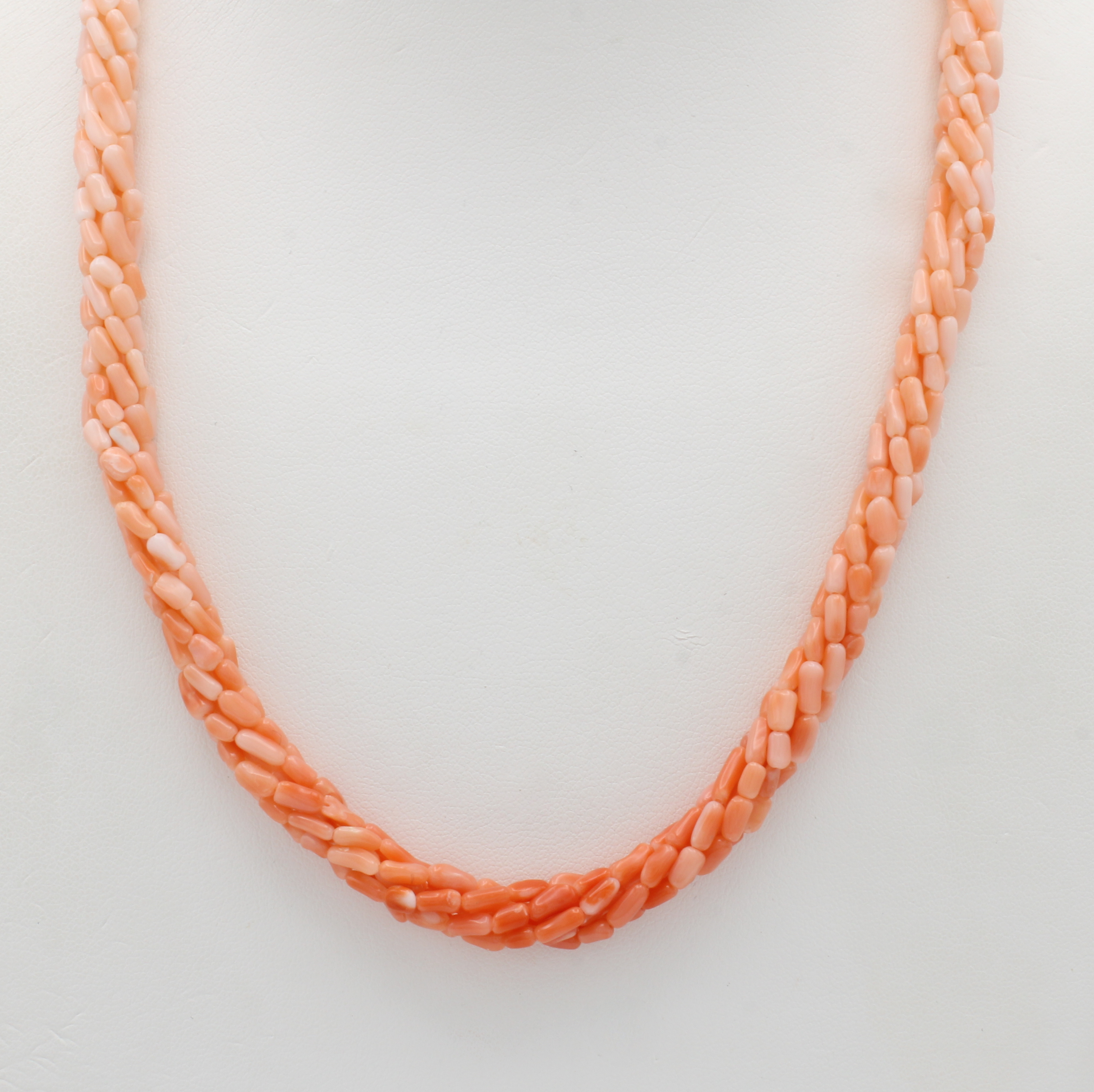 Kette mit Korallen, 6-rhg. eingedreht, Farbverlauf, Karabinerschl., L. ca. 45.5 cm
