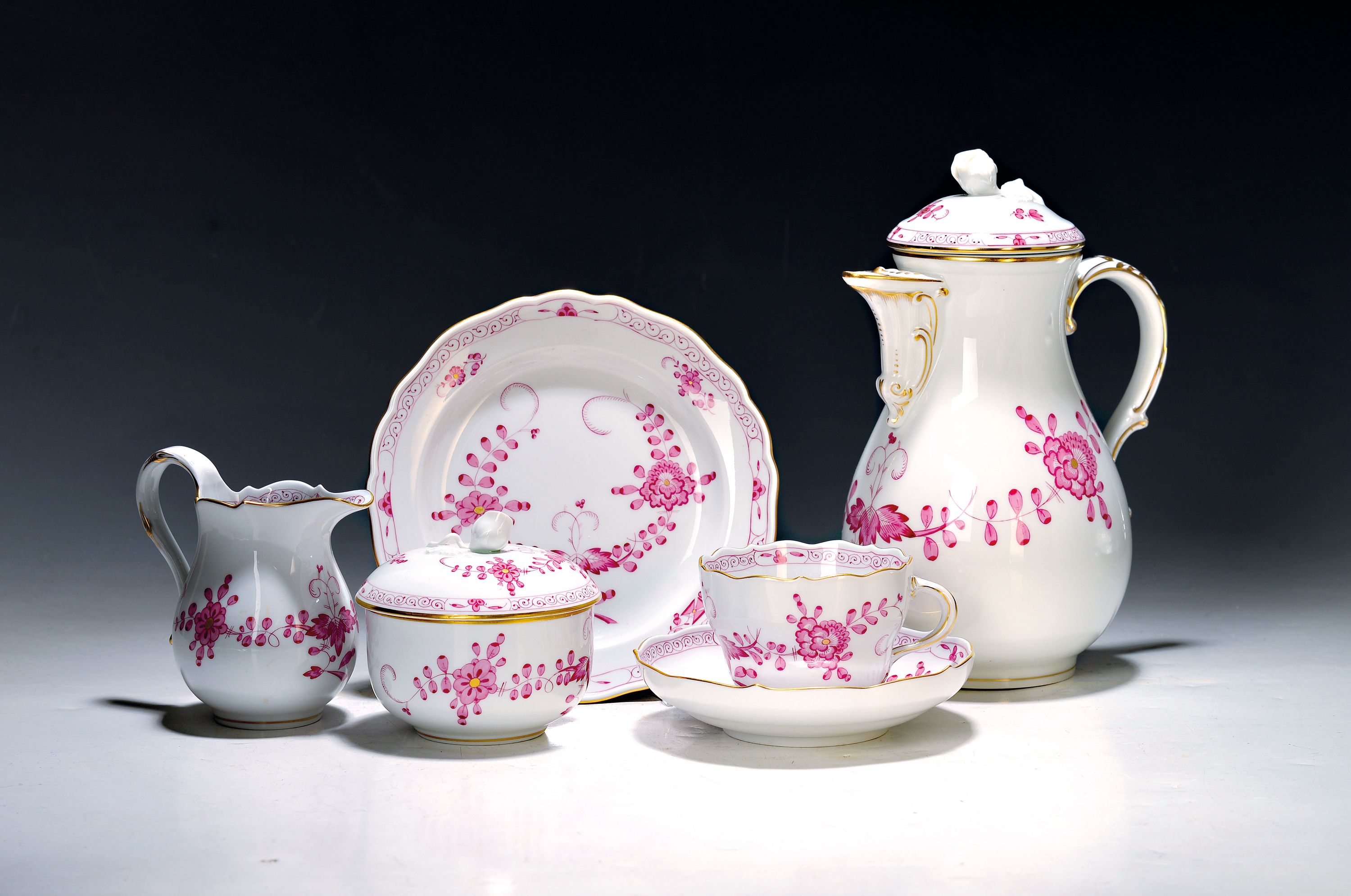 Kaffeeservice für 6 Personen, Meissen, 20. Jh., 2. Wahl, Dekor Indisch purpur, Goldränder,