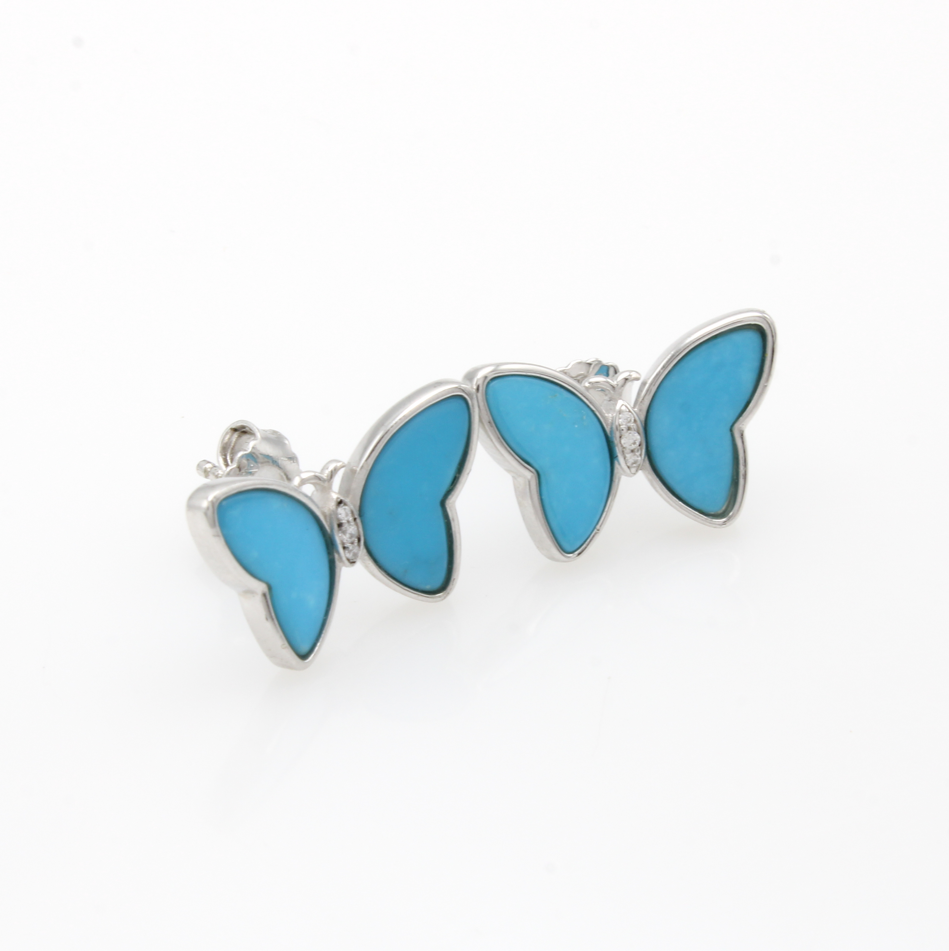Paar Ohrstecker "Schmetterlinge" mit Türkisen, Silber 925/000