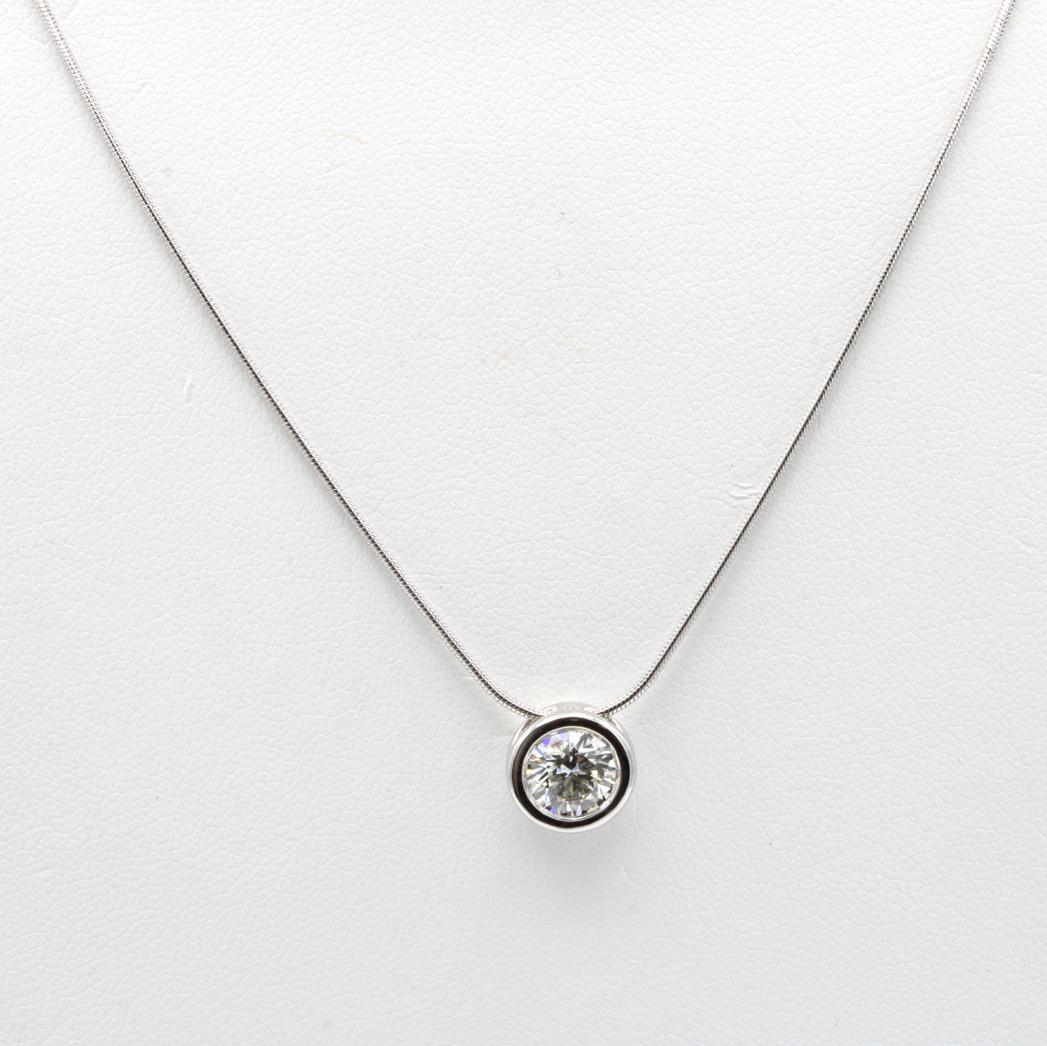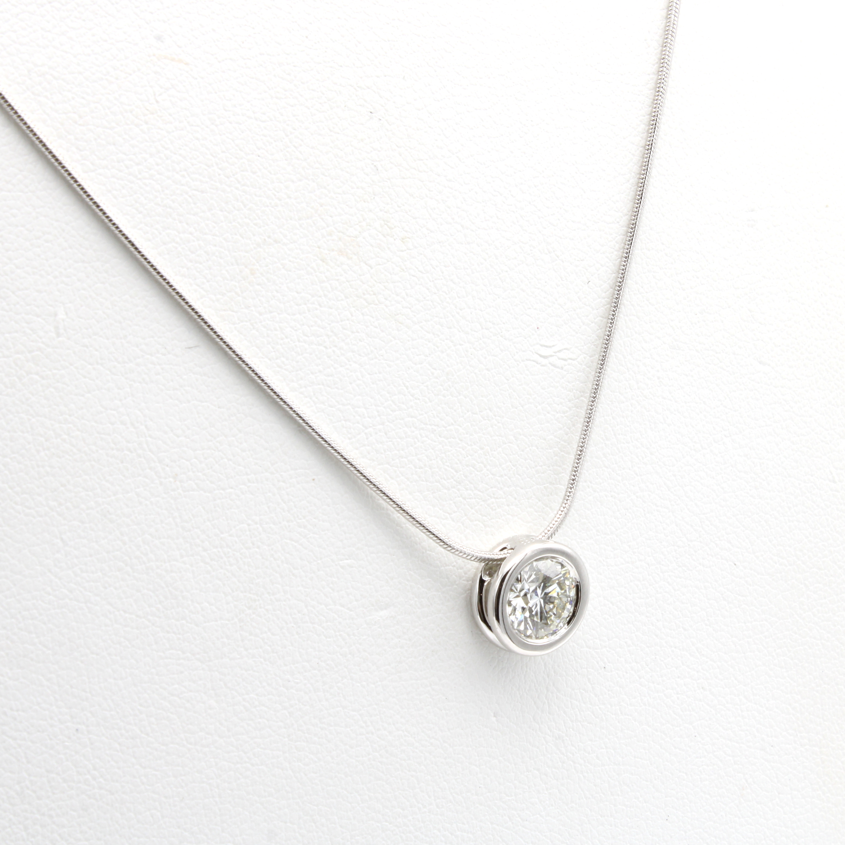 Collier mit Brillantsolitär, WG 750/000 an Schlangenkette, Brill. in Zargenfassung ca. 1.02 ct Weiß/si, L. ca. 44 cm Schätzpreis: 8200, - EUR