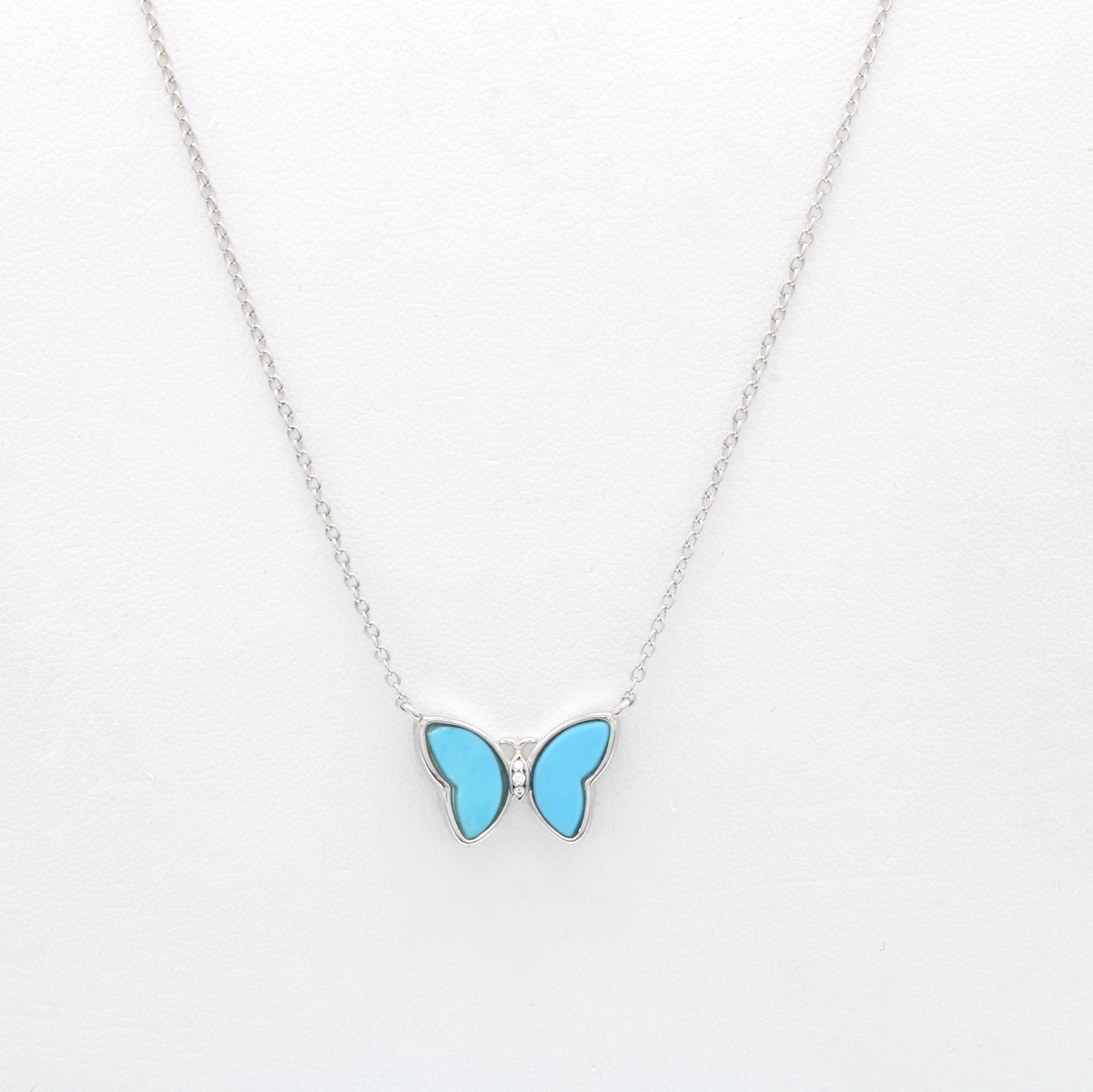 Kette "Schmetterling" mit Türkisen, Silber 925/000, in L. ca. 39.5, 42 u. 44.5 cm tragbar
