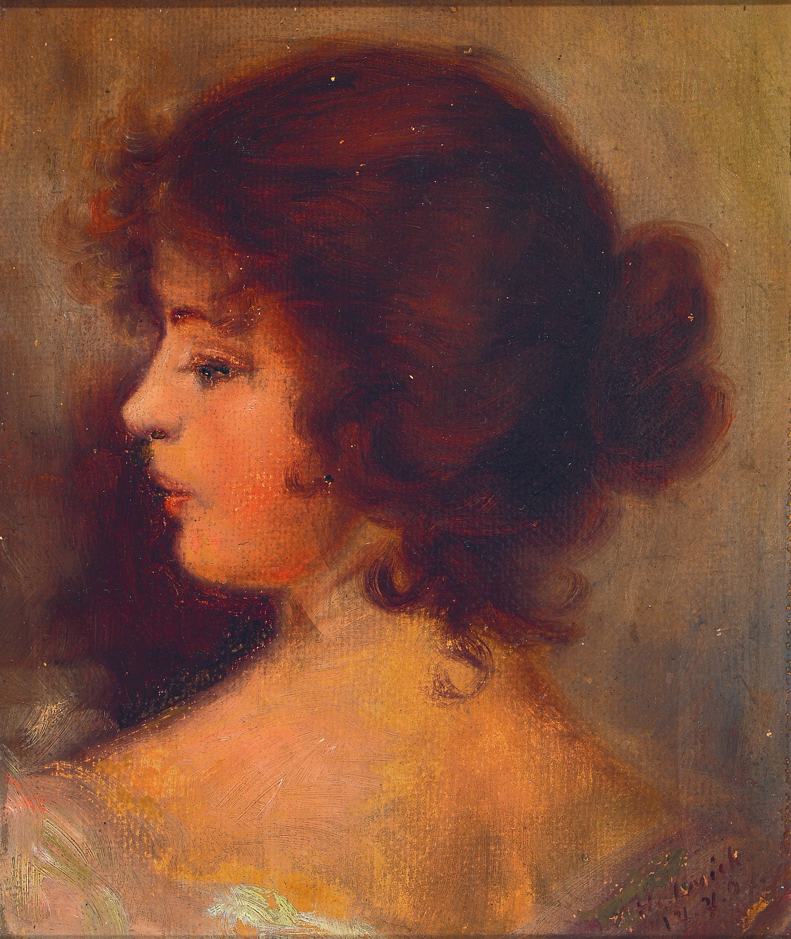 Howard Helmick, 1845-1907, Profilporträt einer jungen Frau, Öl/Malkarton, ca. 26x22cm, R. ca. 30x26cm