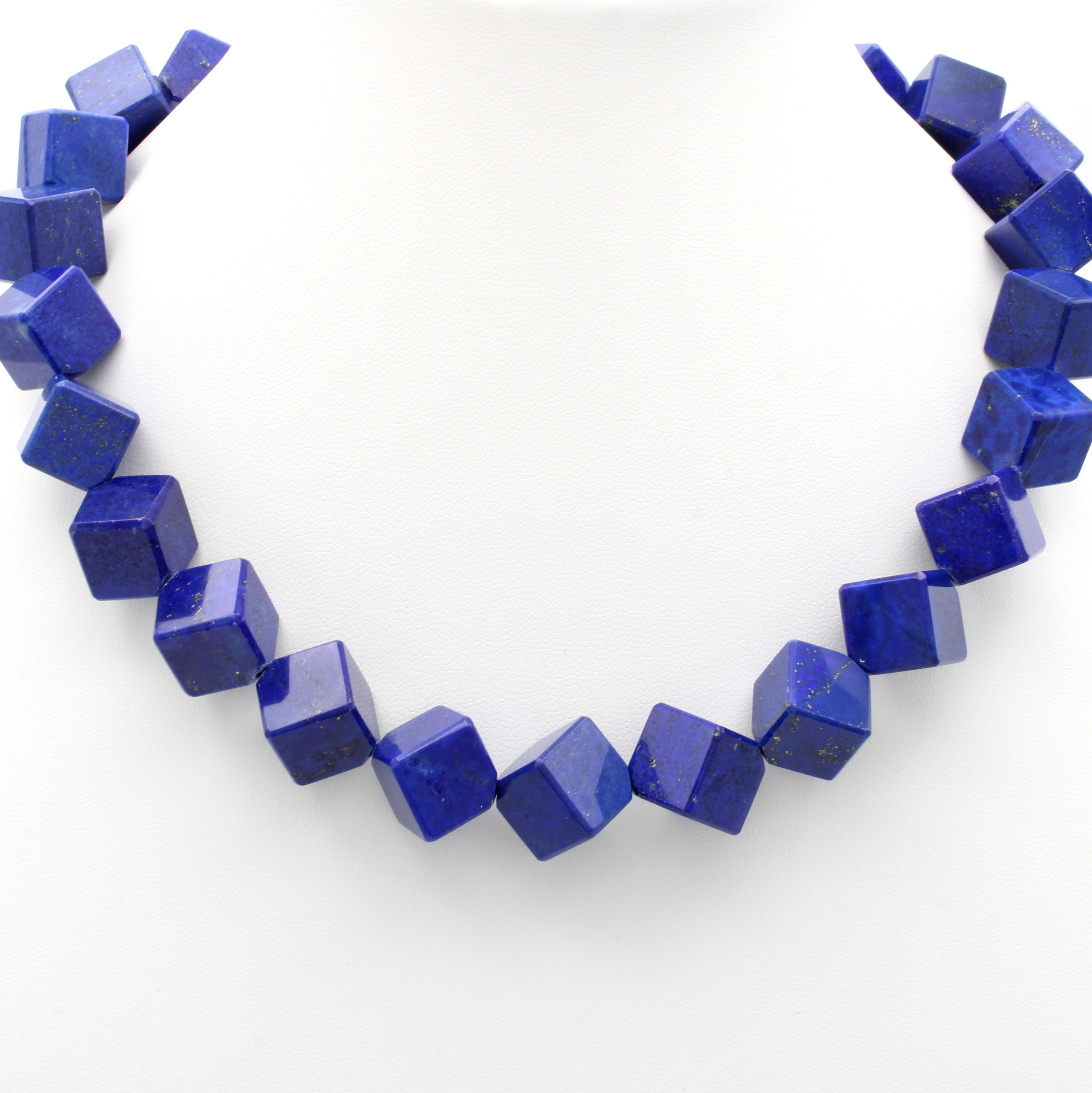 Lapislazulikette, verg. Karabinerschl., Lapislazuliwürfel ca. 12 mm, L. ca. 44 cm Schätzpreis: 1380, - EUR