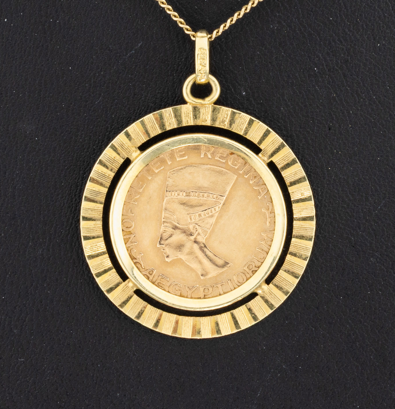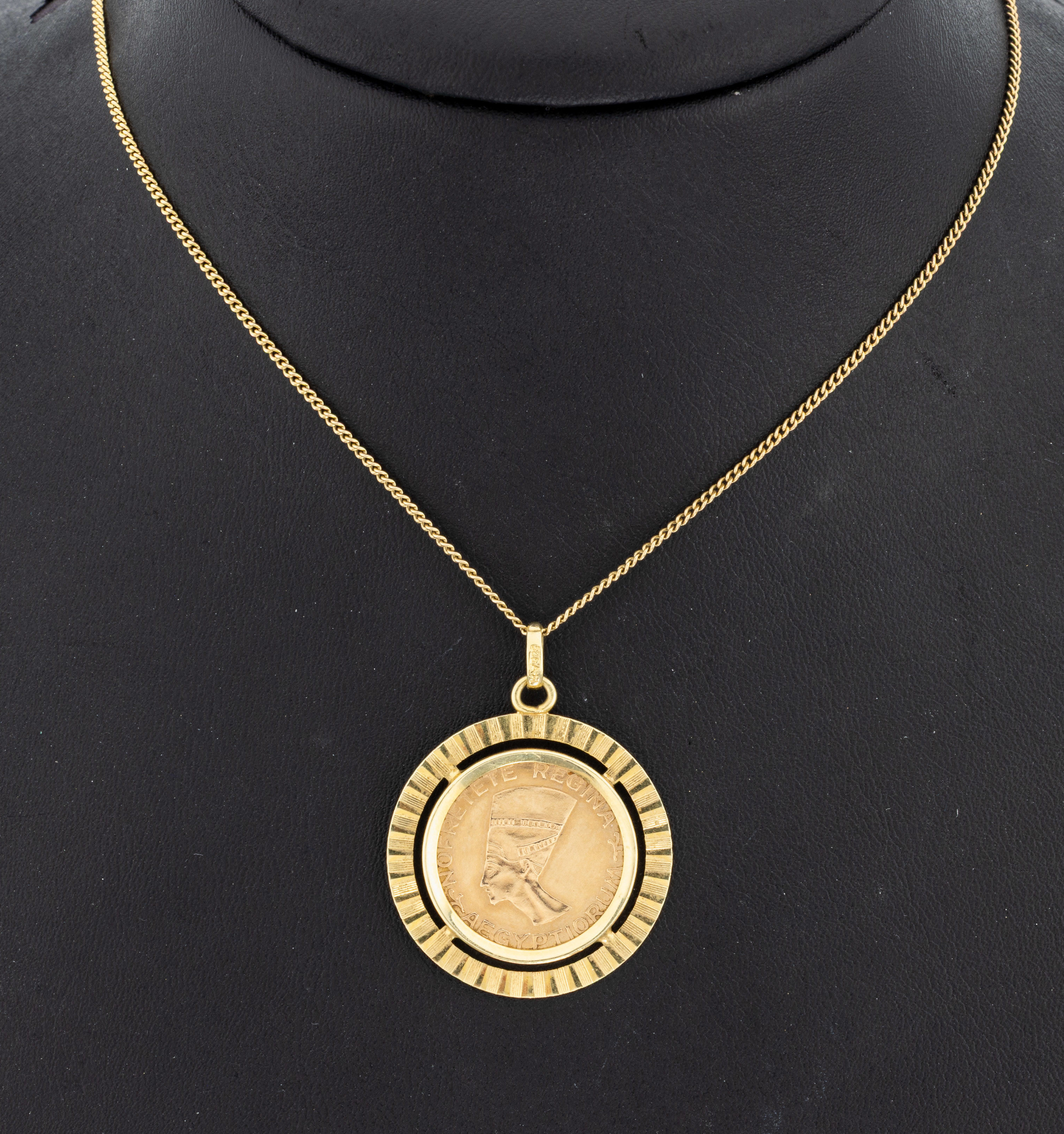 Nofretete, unpretentious setting, with chain, YG 585/000, l. approx. 46 cm, chain