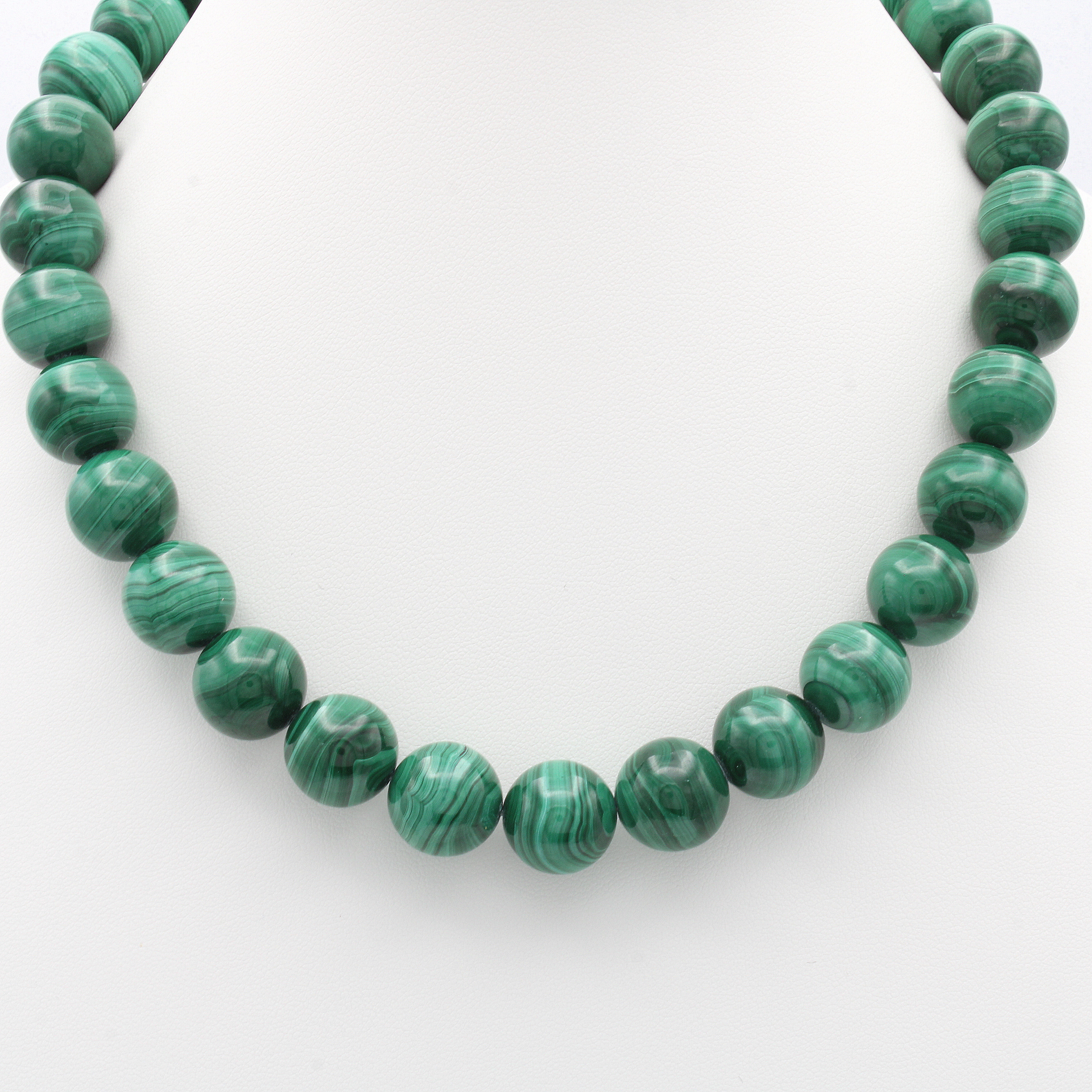 Malachitkugelkette, verg. Karabinerschl., Kugeld. ca. 14 mm, L. ca. 44 cm Schätzpreis: 580, - EUR