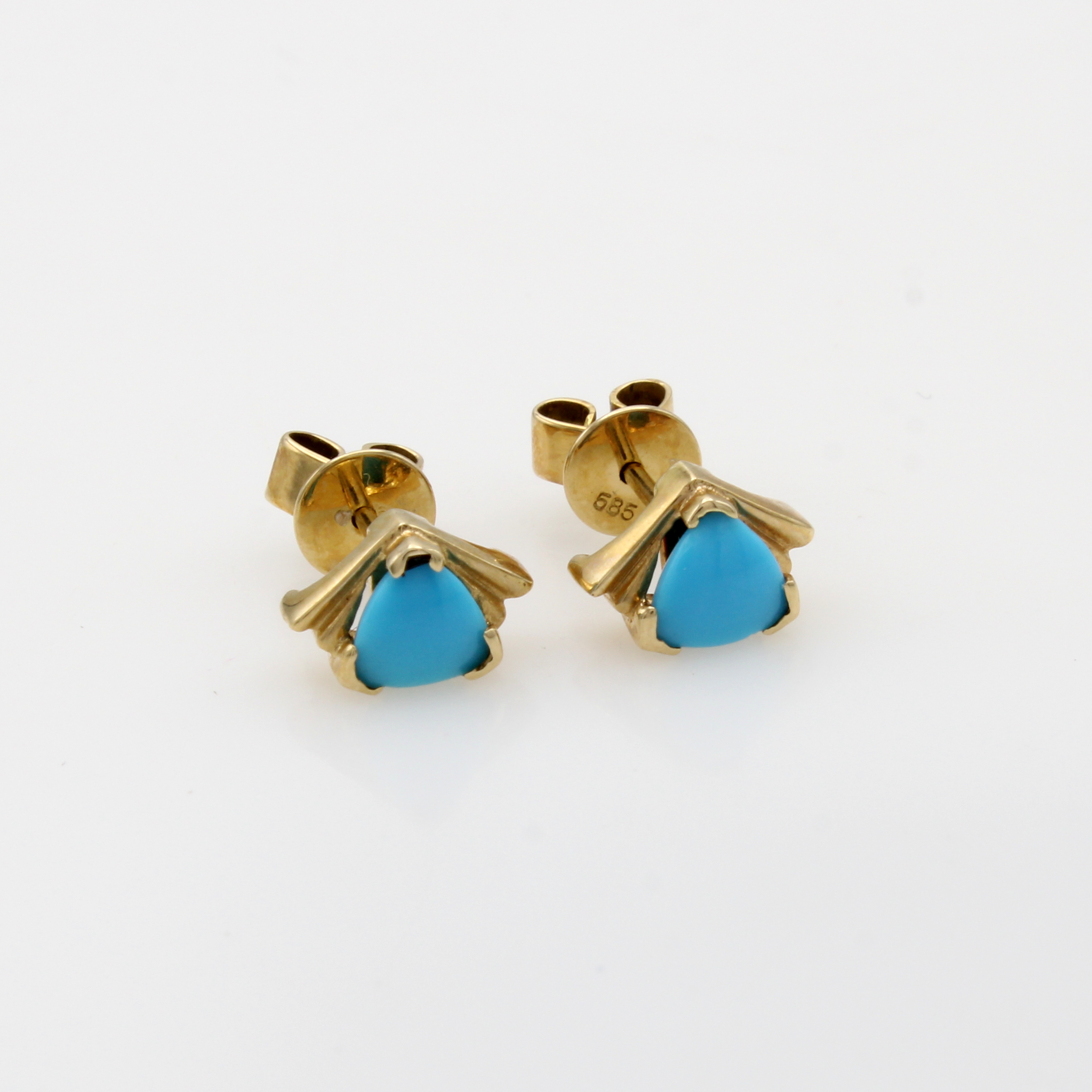Paar Ohrstecker mit Türkisen, GG 585/000, dreieck. Türkise, fächerf. Goldelemente Schätzpreis: 380, - EUR