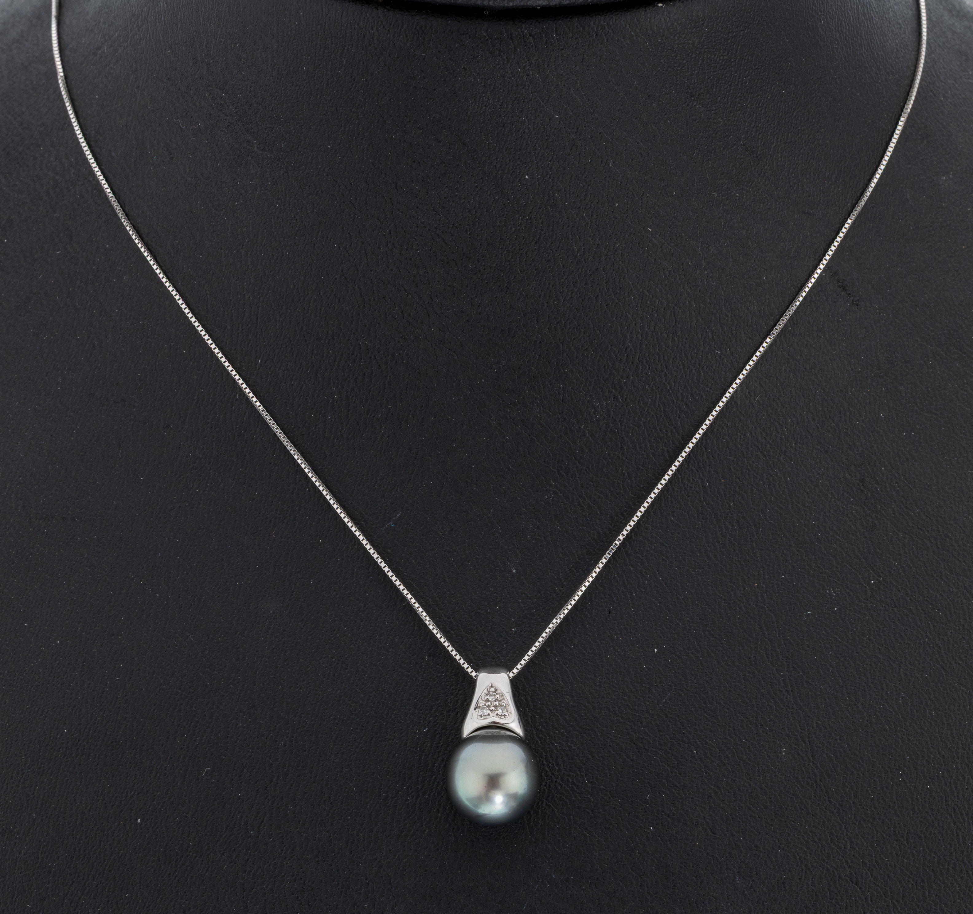 14 kt Gold Perl-Diamant-Anhänger, WG 585/000, Tahitizuchtperle, D. ca. 9.7 mm, 3