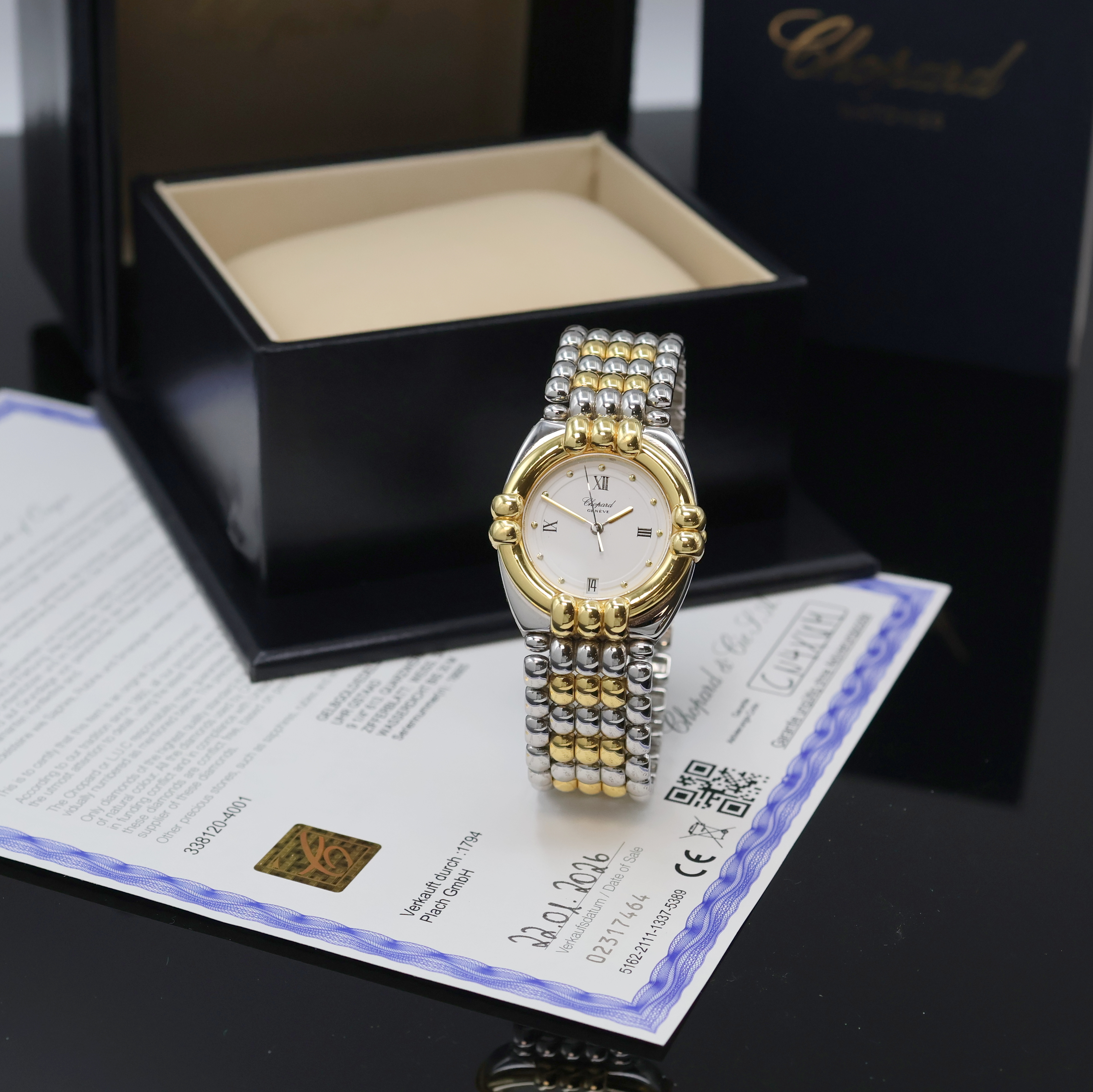 verkauft laut beil. orig. Zertifikat 01/2026, quarz, Goldlünette gegen Boden 4-fach