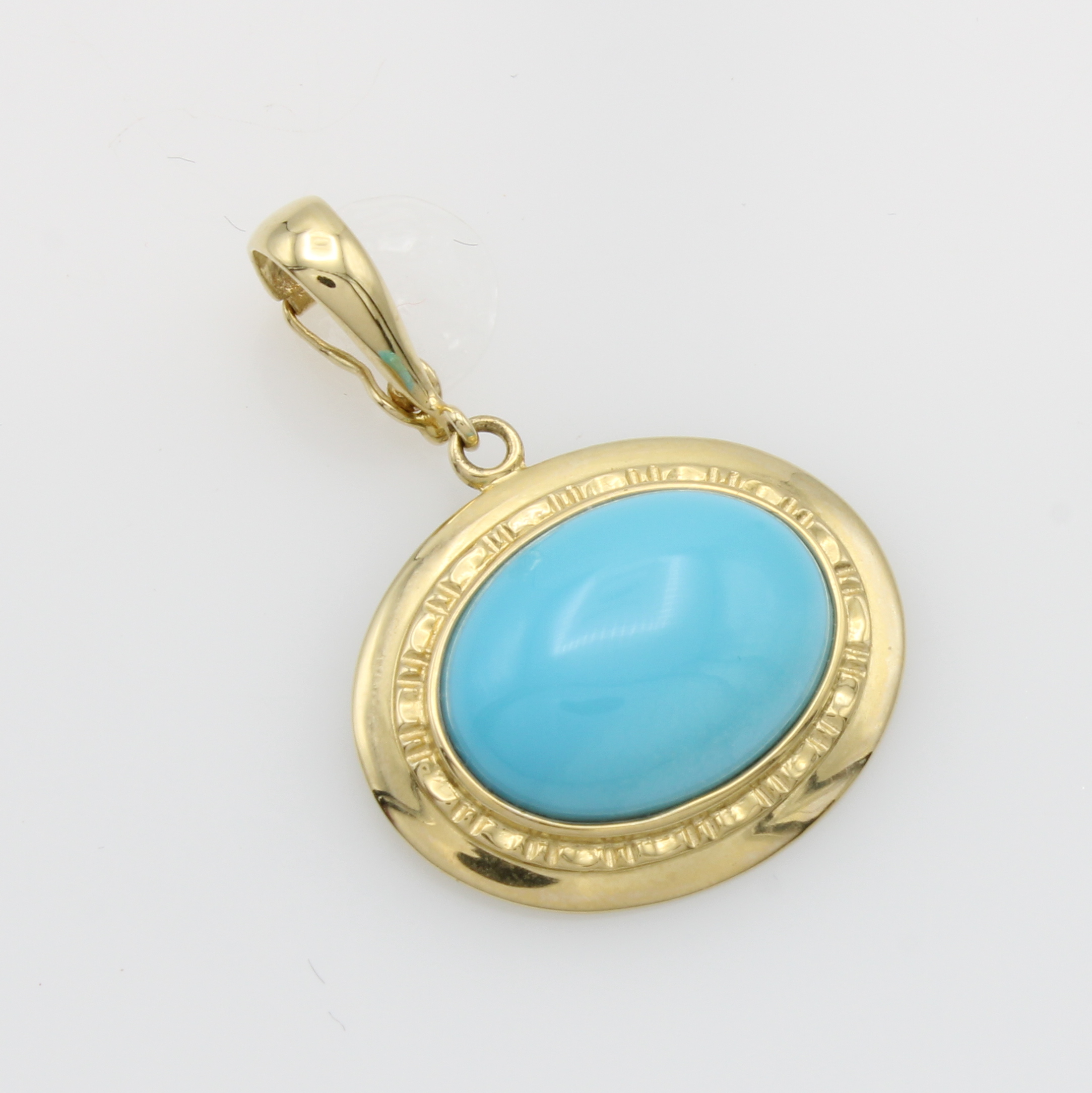 Clipanhänger mit Türkis, GG 585/000, ovaler Türkis in breiter, tlw. geriefter Fassung Schätzpreis: 600, - EUR