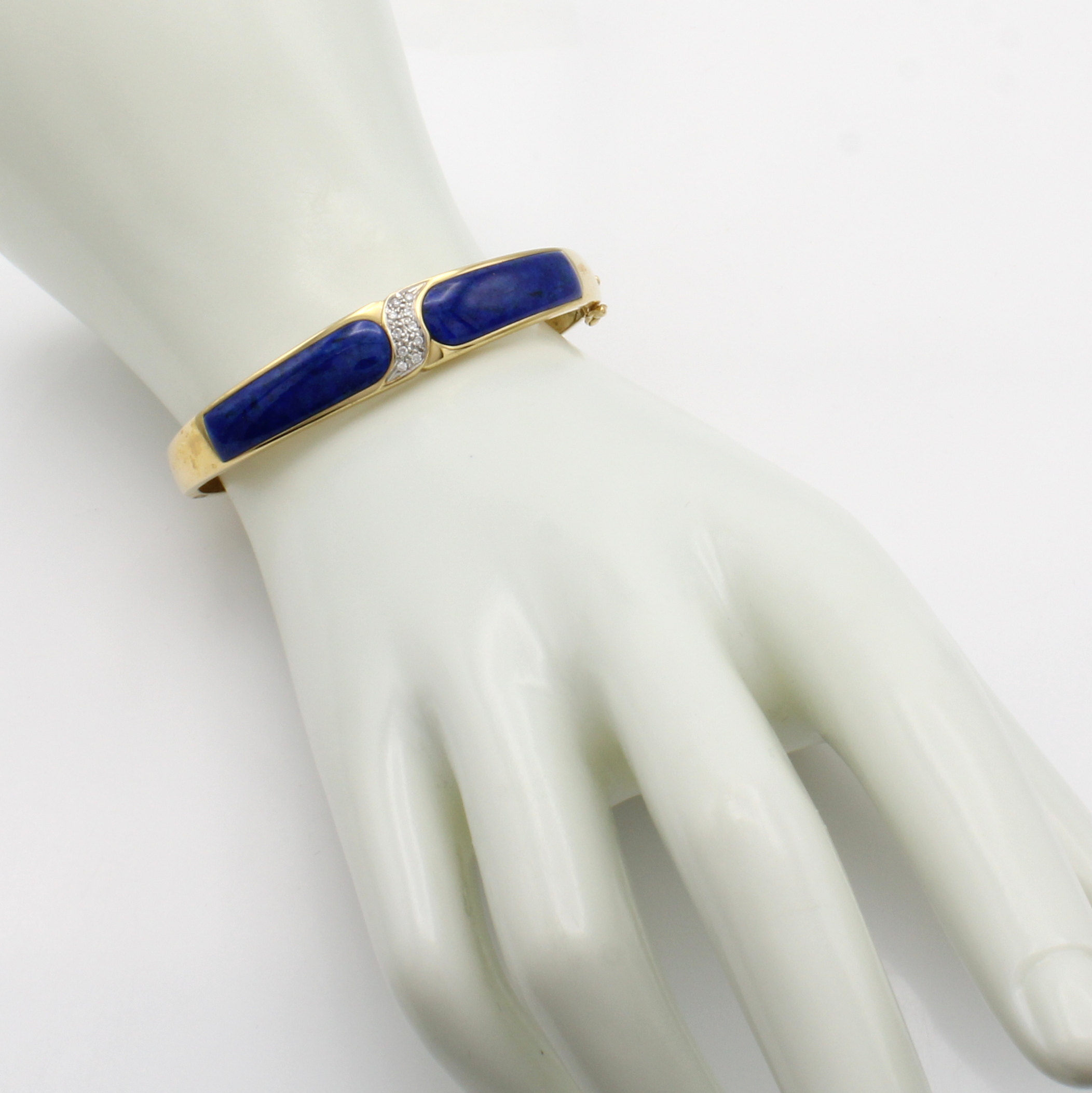 Armreif mit Lapislazuli und Brillanten, GG 585/000, Brill. mittig gef. zus. ca. 0.10 ct Weiß/si, Kastenschl. m. Sicherheitsbügel Schätzpreis: 2800, - EUR