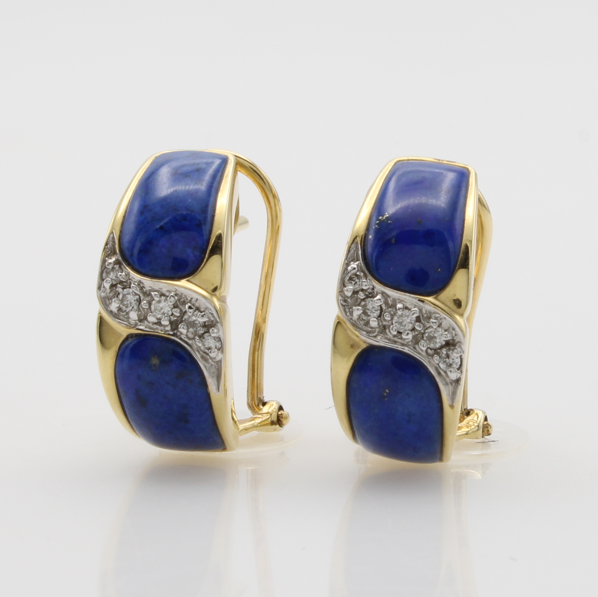 Paar Ohrstecker mit Lapislazuli und Brillanten, GG 585/000, abgerundete Form, Brill. zus. ca. 0.10 ct Weiß/si-p, m. zusätzl. Clipbrisur Schätzpreis: 1280, - EUR