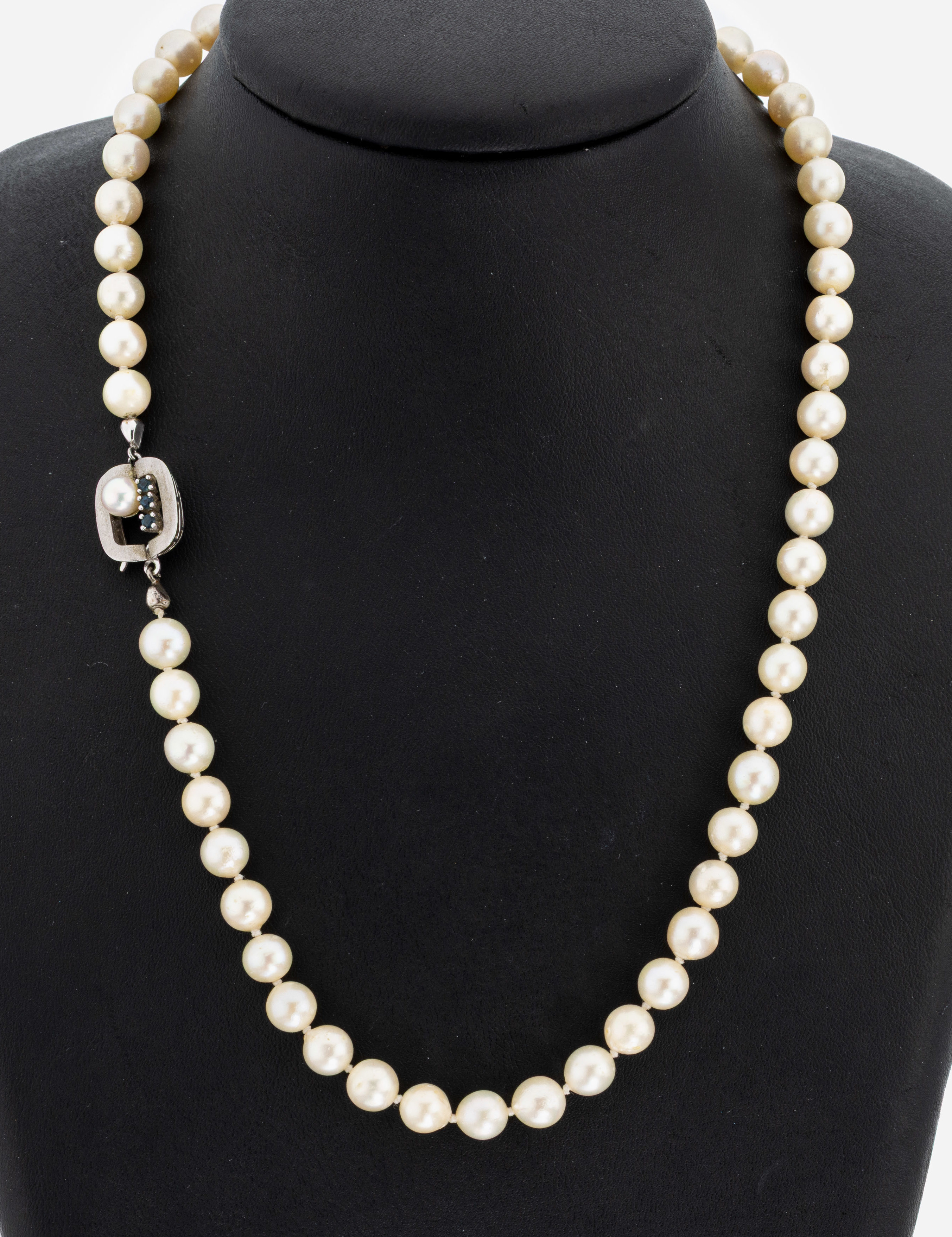 Perl-Collier mit 14 kt Gold Saphir-Schließe, WG 585/000, Zuchtperlen, D. ca. 7 mm,
