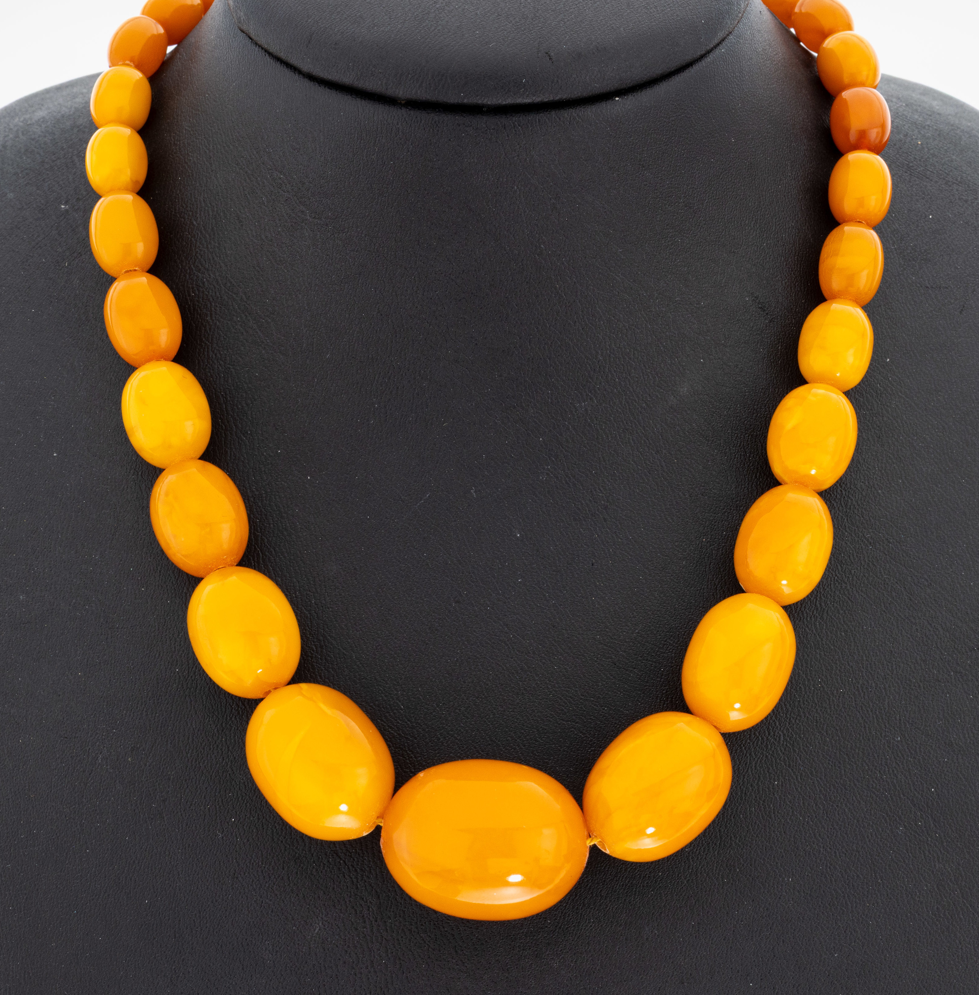 Bernstein-Collier, Butterscotch-Bernstein- Oliven im Verlauf, D. ca. 6.2-21.2 mm, Schraubschließe in Bernstein integriert, ca. 43.9 g
