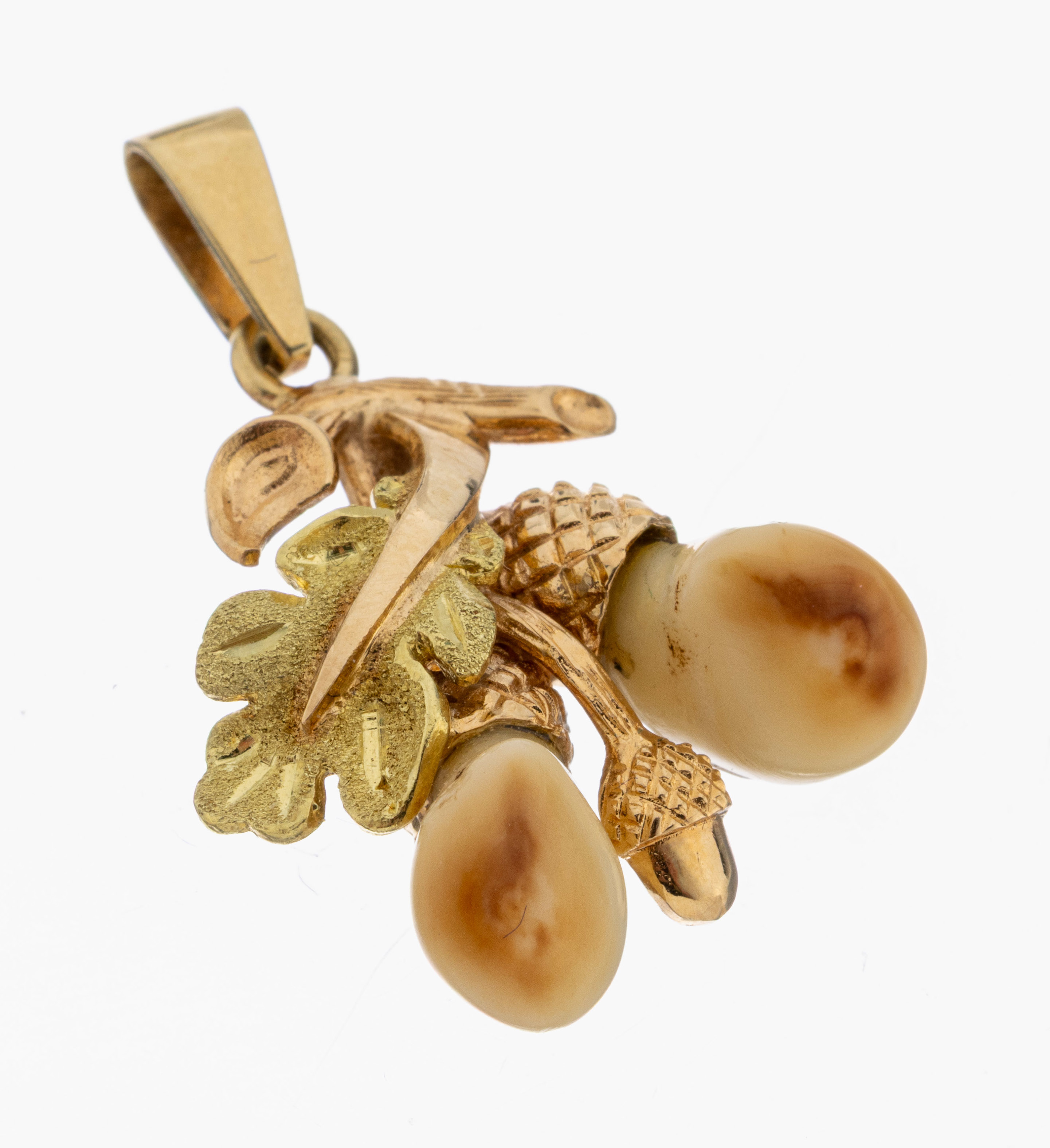 14 kt Gold Grandel-Anhänger, 1960er Jahre, GG/RG 585/000, Eichenlaubdekor, 2 Grandeln,