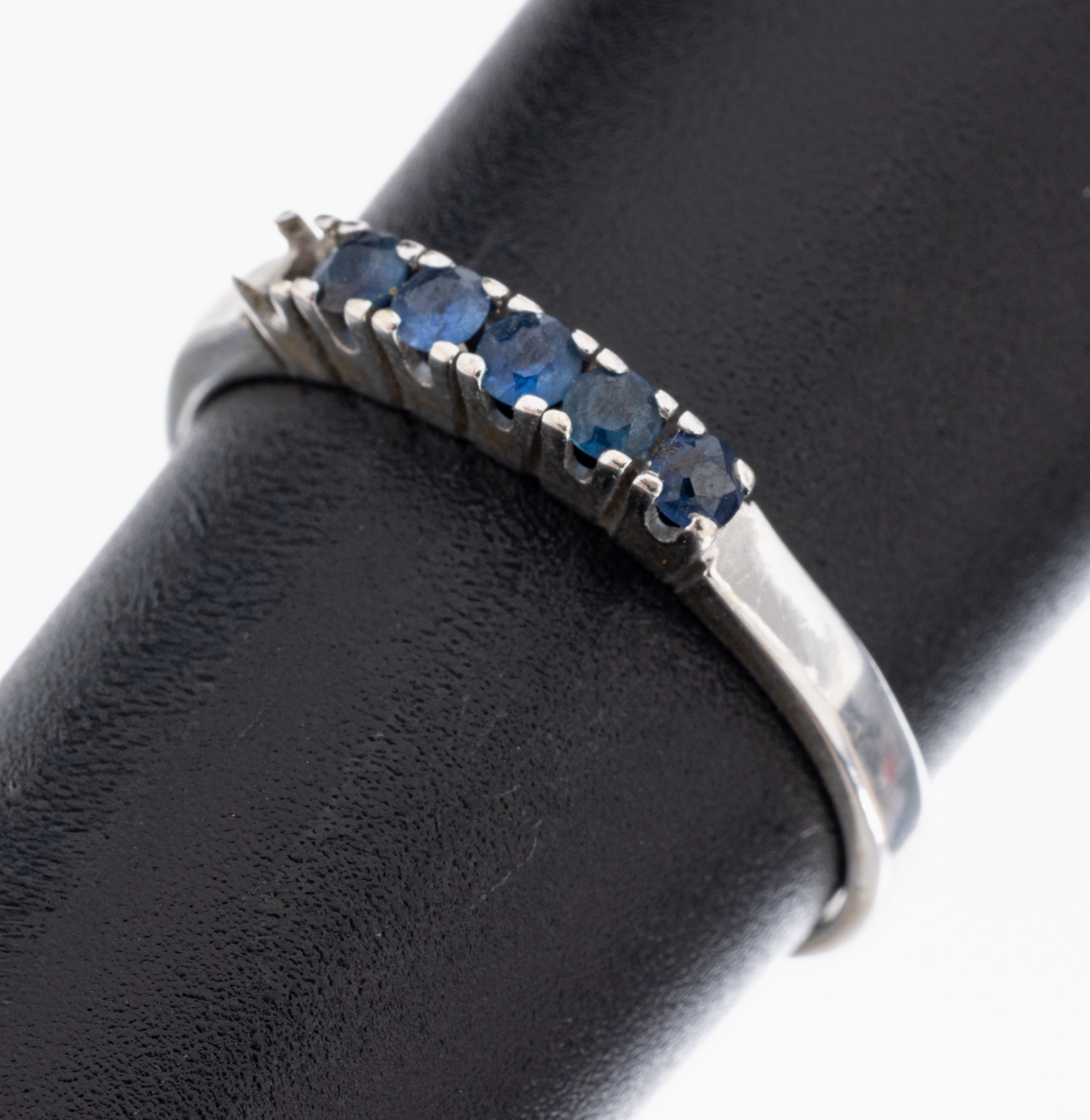 14 kt Gold Saphir-Ring, WG 585/000, 5 rundfacett. Saphire zus. ca. 0.20 ct, 1 Stein