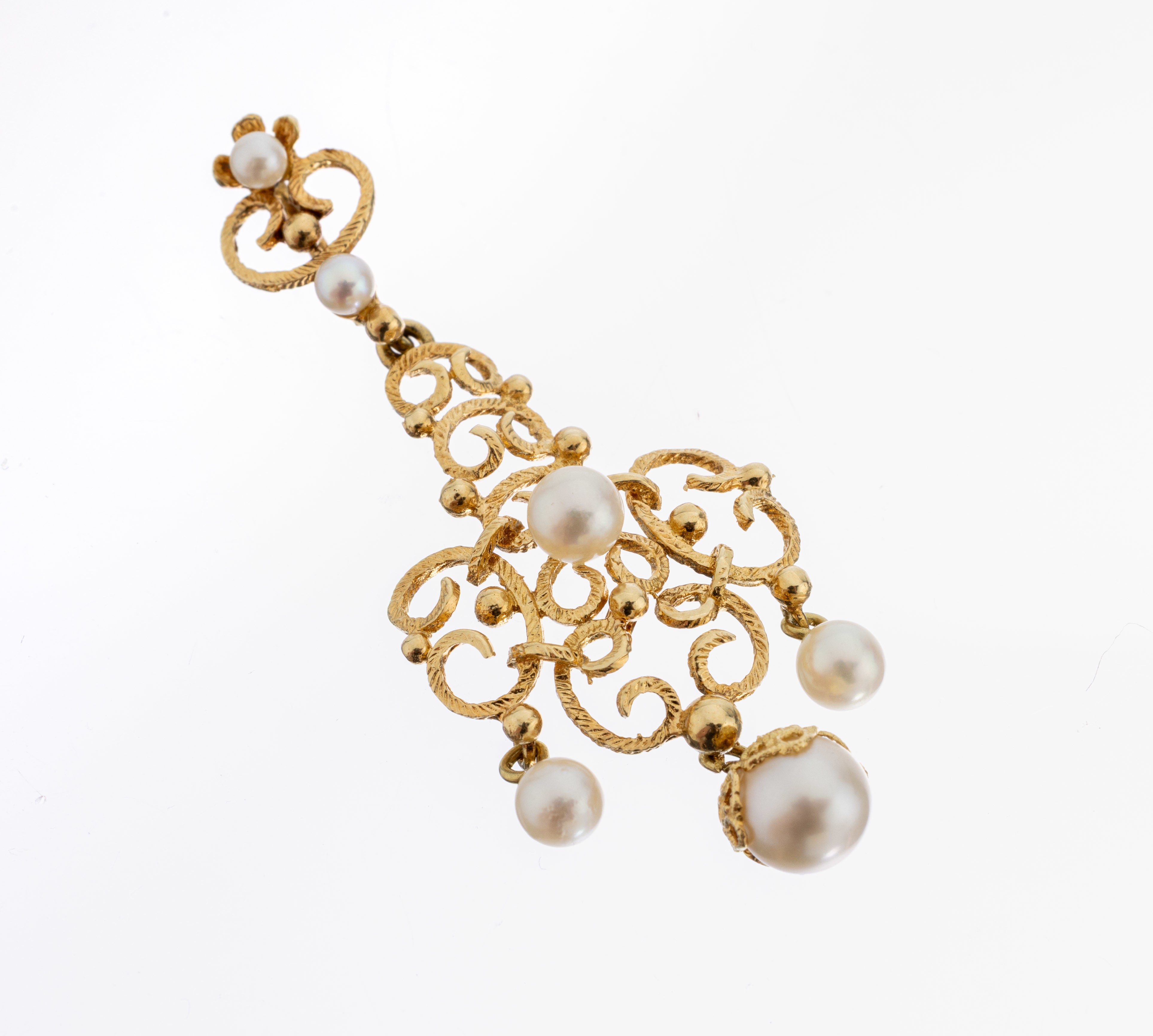14 kt Gold Perl-Anhänger, GG 585/000, Gestaltung aus Voluten, 6 Zuchtperlen in versch.