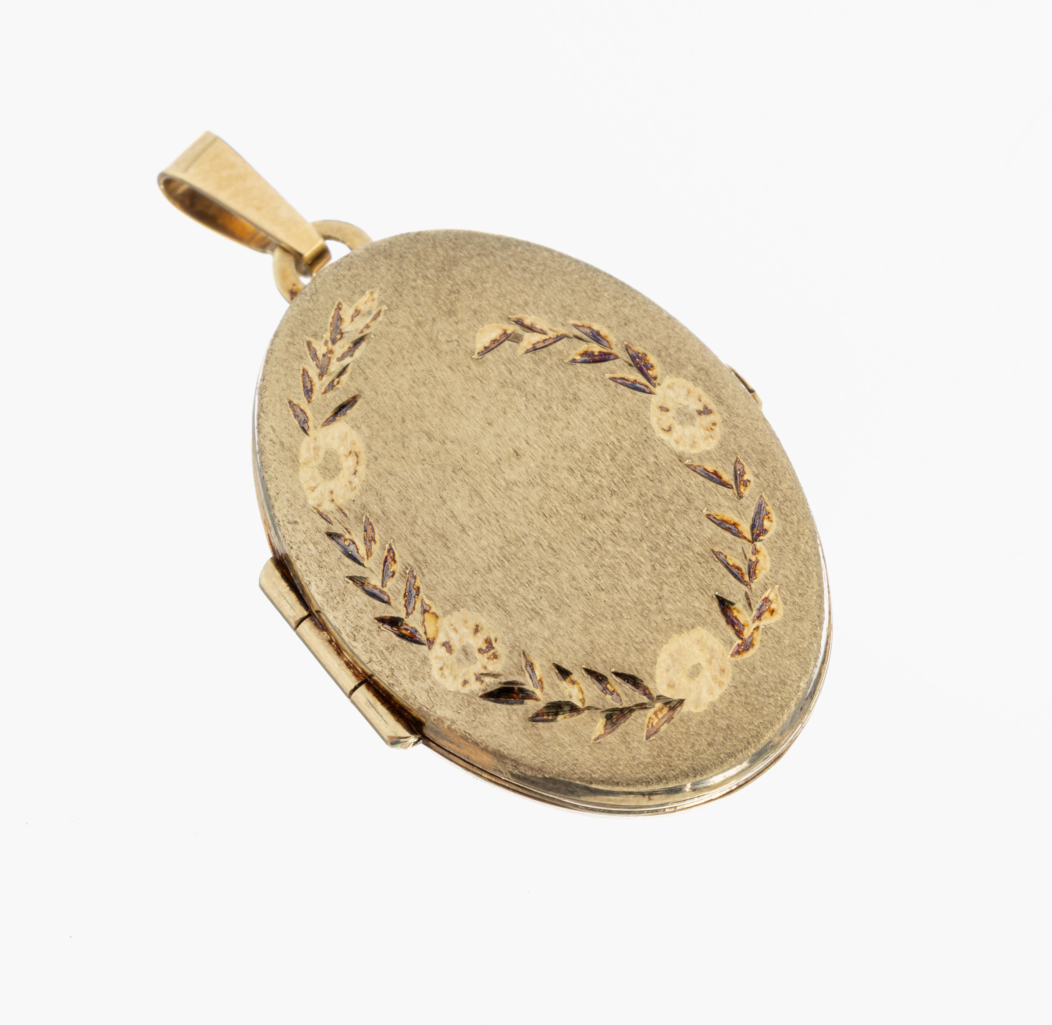 14 kt Gold Medaillon-Anhänger, GG 585/000, Vorderseite sat. und floral grav., ca. 3.6 x 2.2 cm, ca. 4.6 g