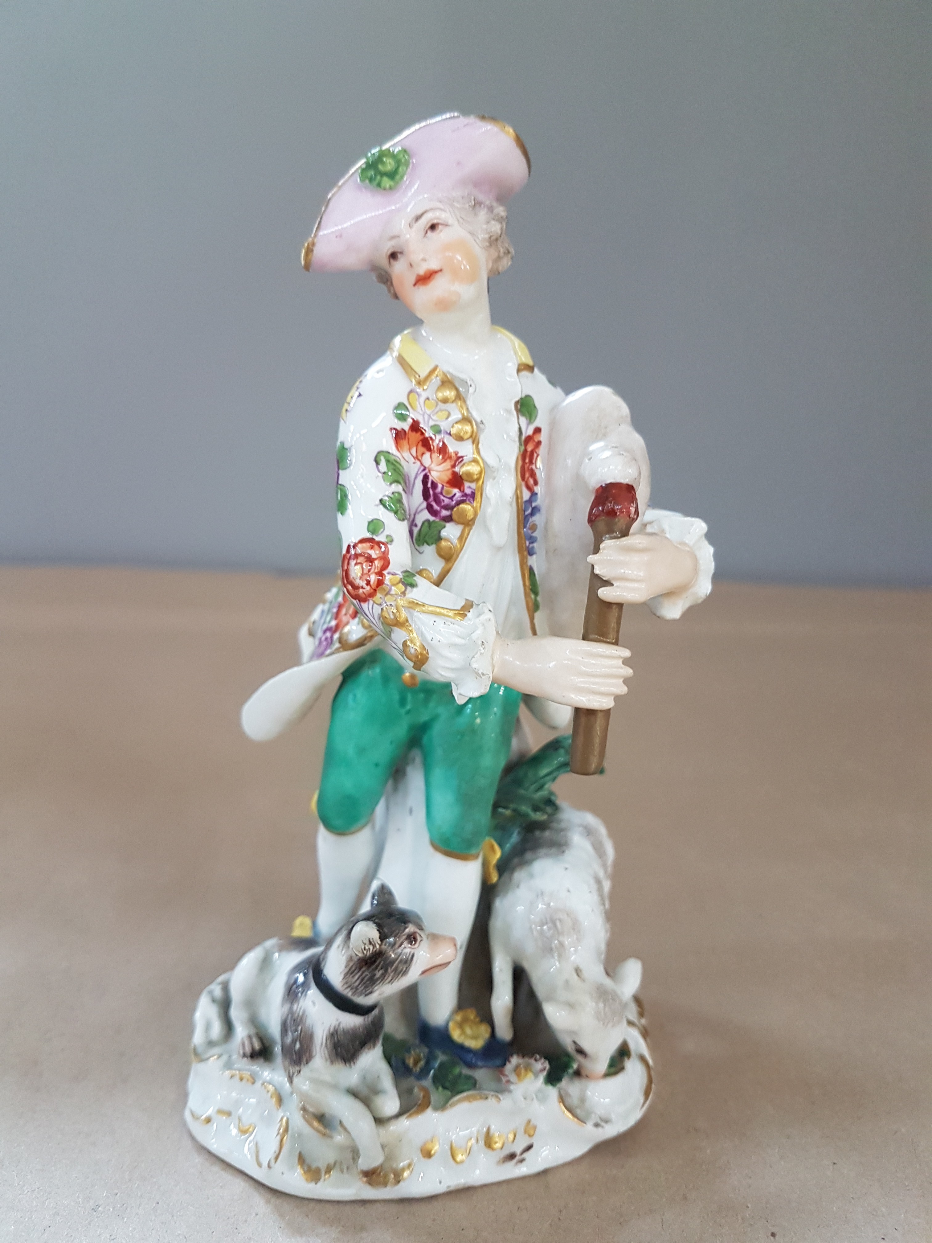 Kaendler, Schäfer mit Hund und Schaf, polychrom bemalt, Goldstaffage, restauriert,