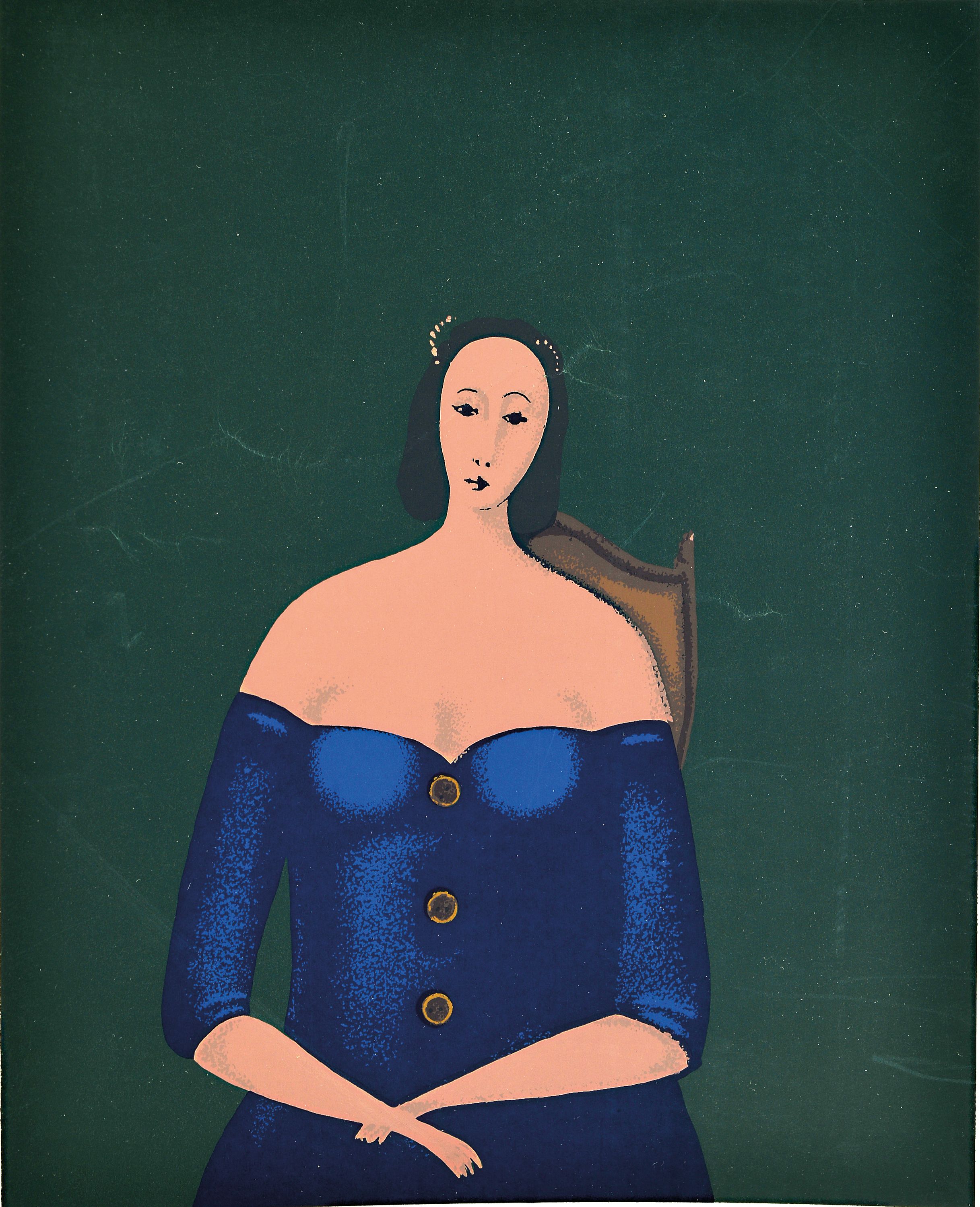 Frau inblauem Kleid, Ed. VII/XXX, handsigniert, leichte Oberflächenunebenheiten,