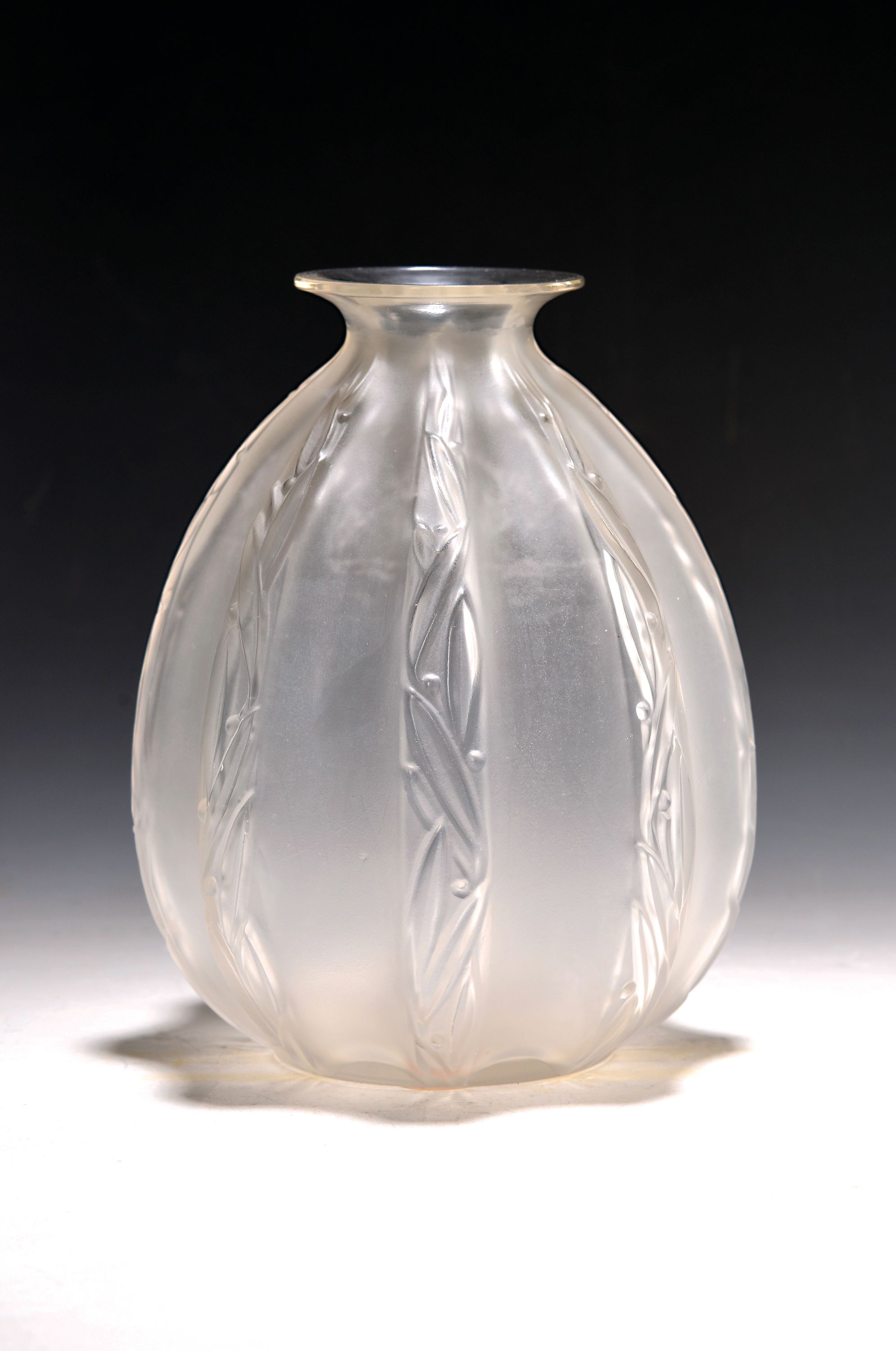 Vase Les Veuillages Blanc, Marius Ernset Sabino, Noisy-le-Sec/Paris, vor 1945, birnenförmig,