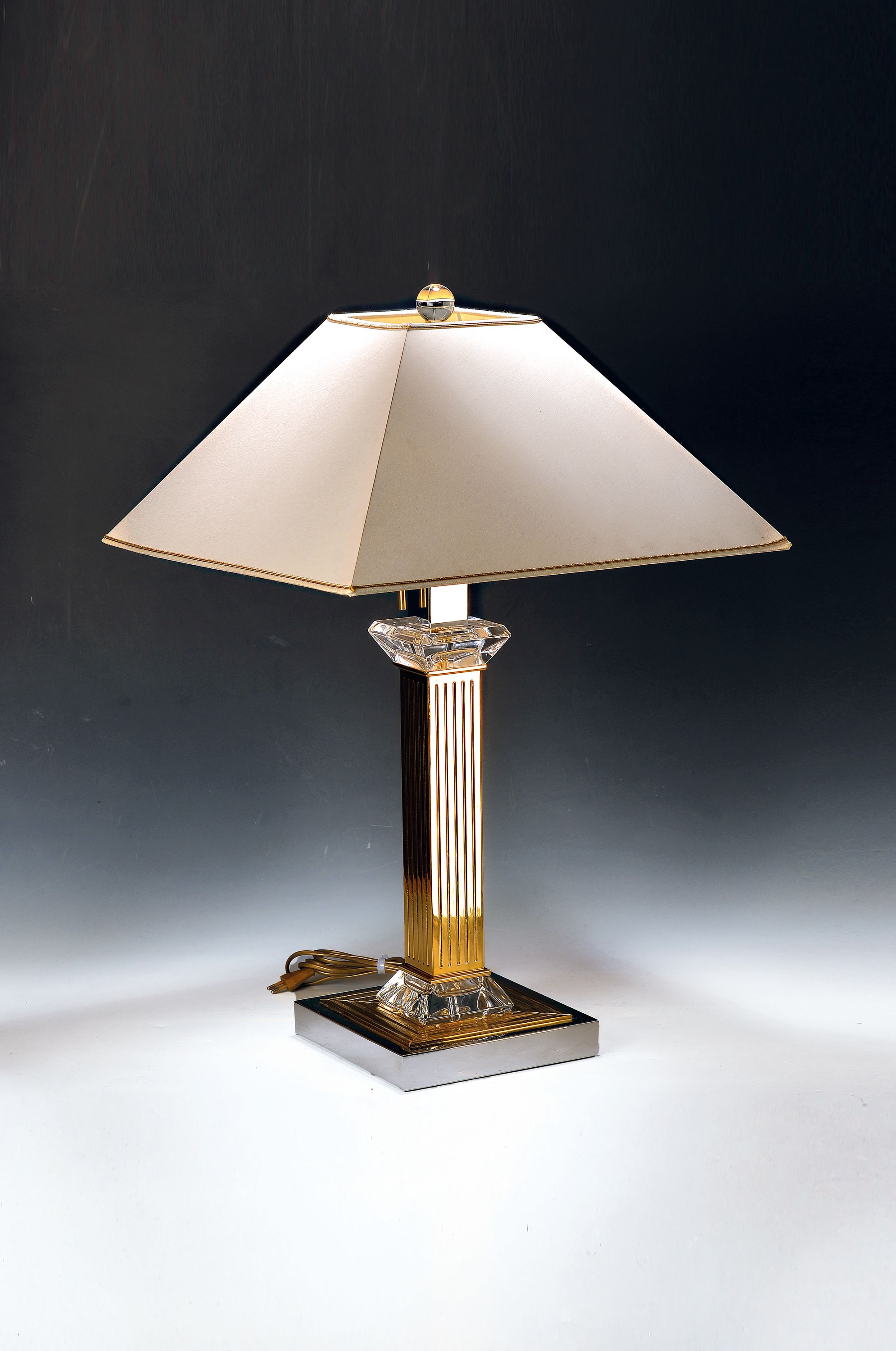 Tischlampe, wohl Italien, 20. Jh., Messing partiell verchromt, Acryl, zwei Brennstellen,