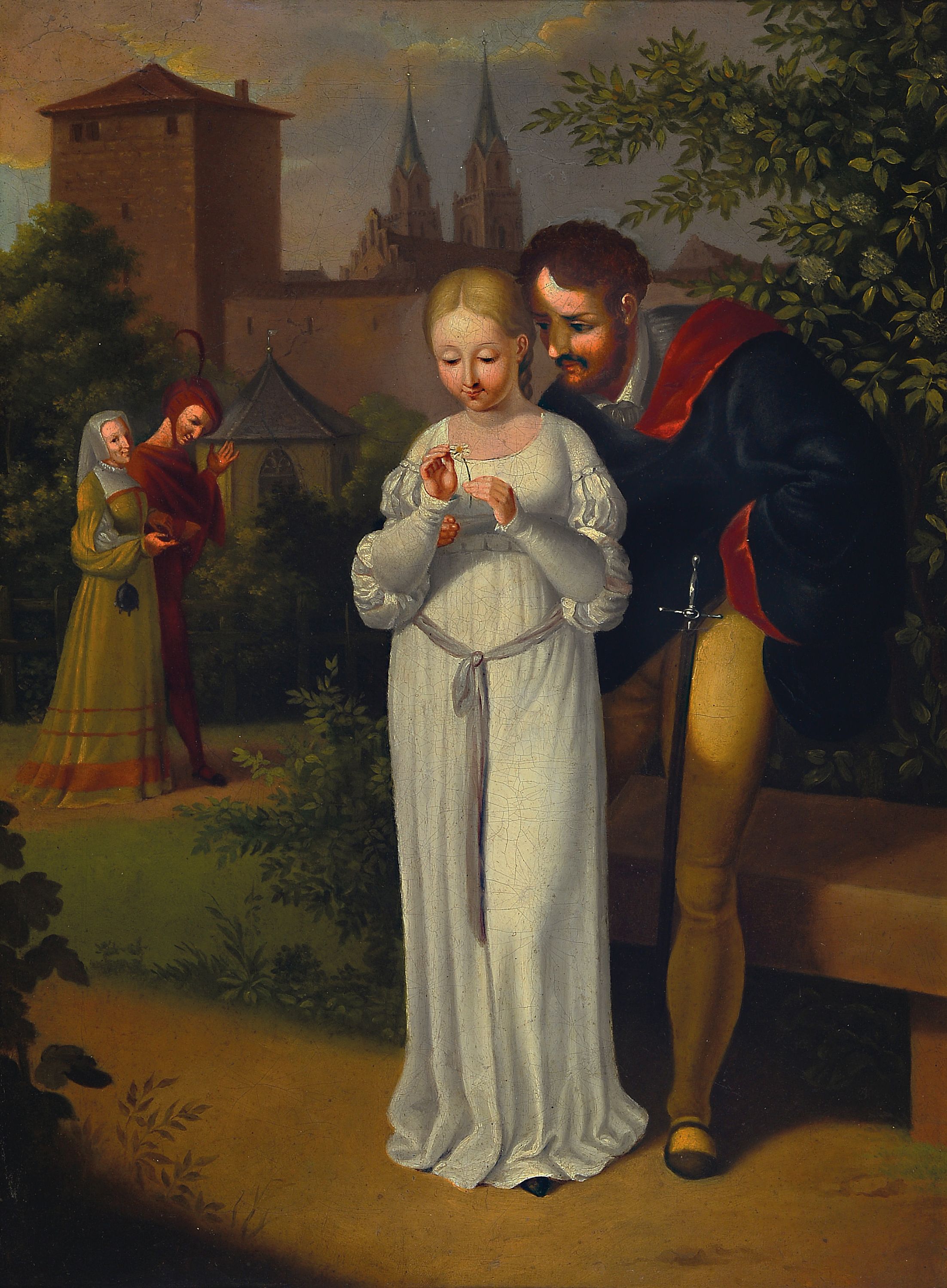 Etikett auf dem Keilrahmen zugeschrieben und evtl. als Szene aus Goethes Faust benannt,