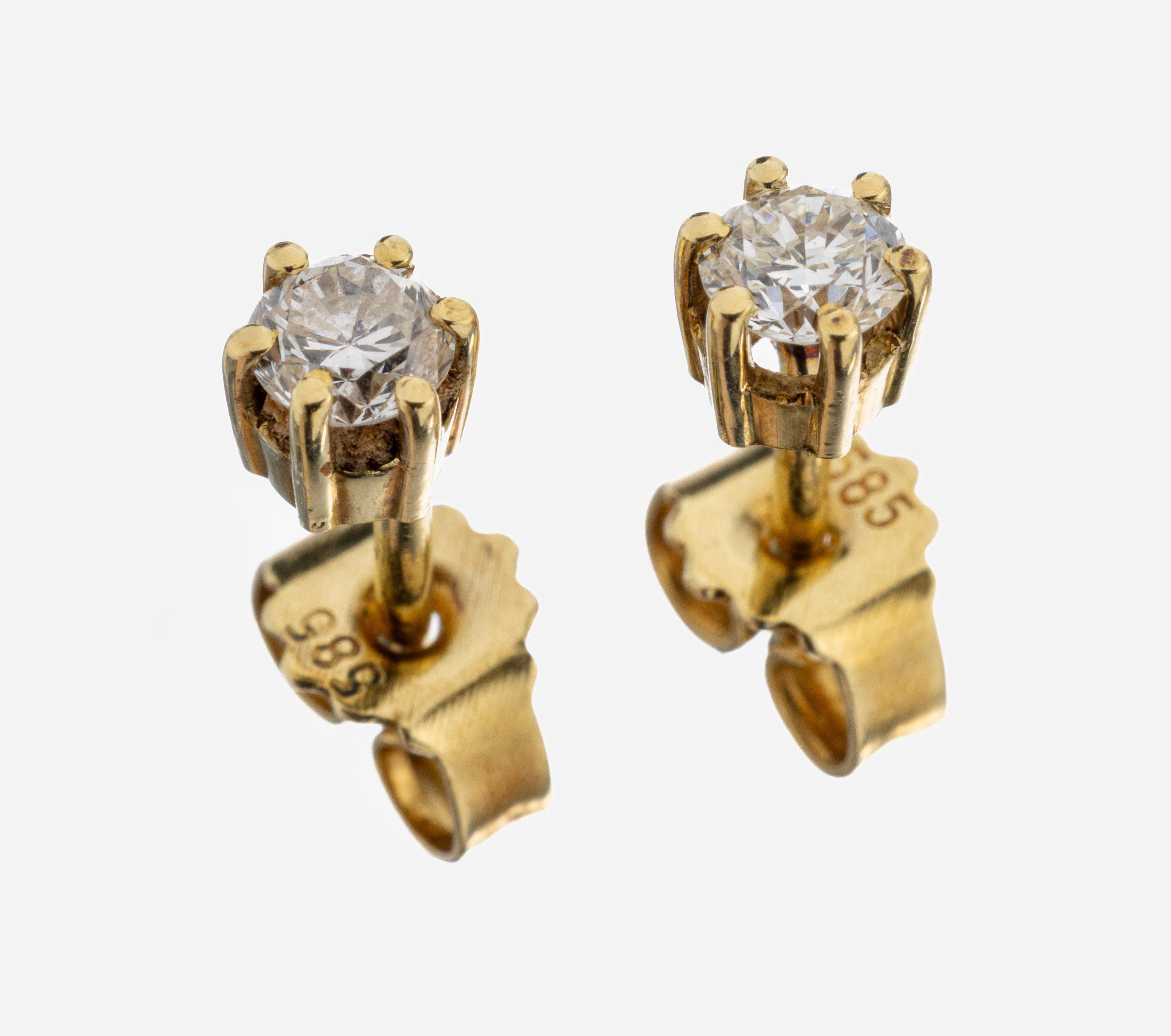 Pair of 14 kt gold brilliant-earrings , YG 585/000, 2 brilliants total approx. 0.30 ct Wesselton/vs-si