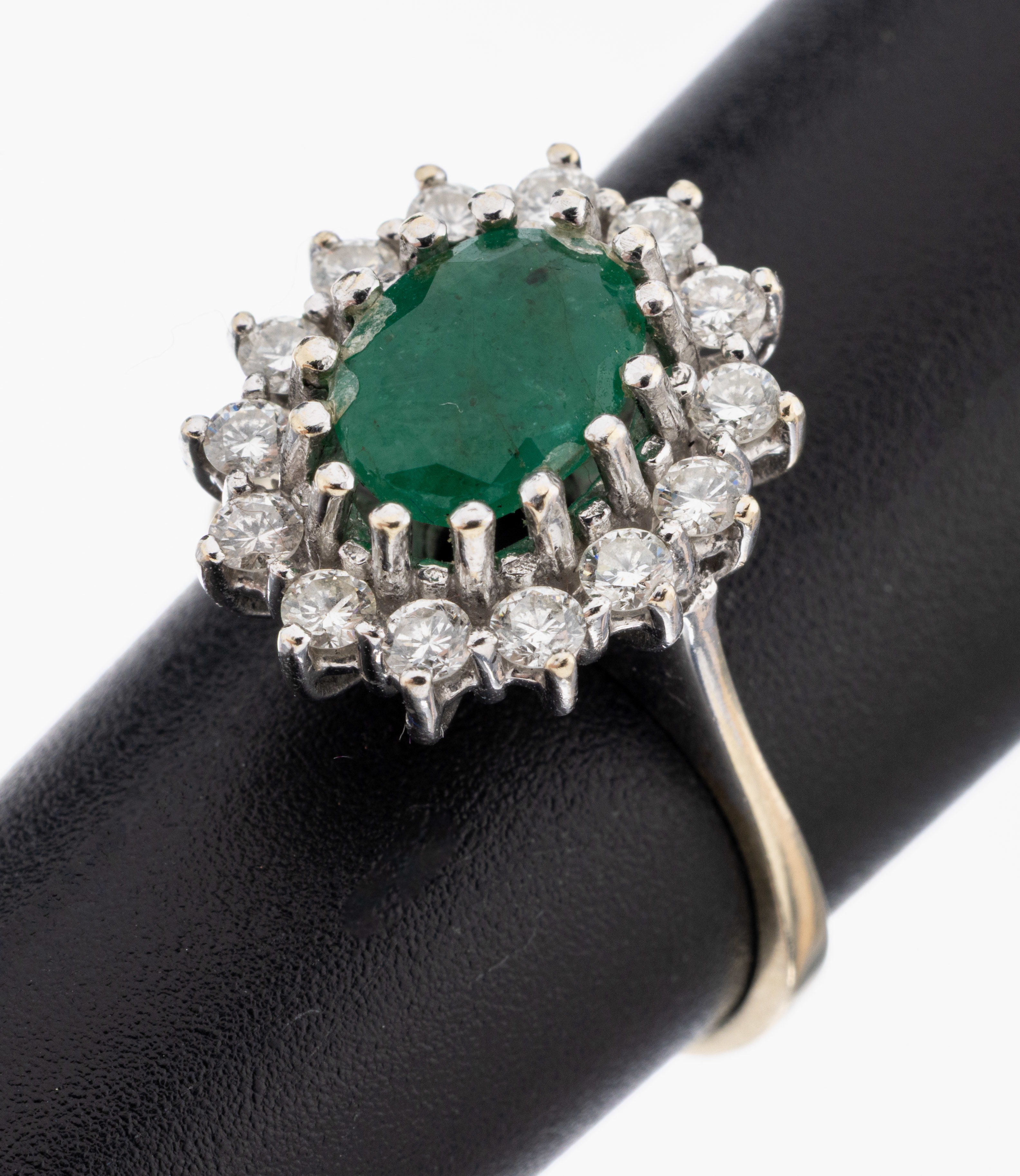18 kt Gold Smaragd-Brillant-Ring, GG/WG 750/000, mittig ovalfacett. Smaragd ca. 1.20