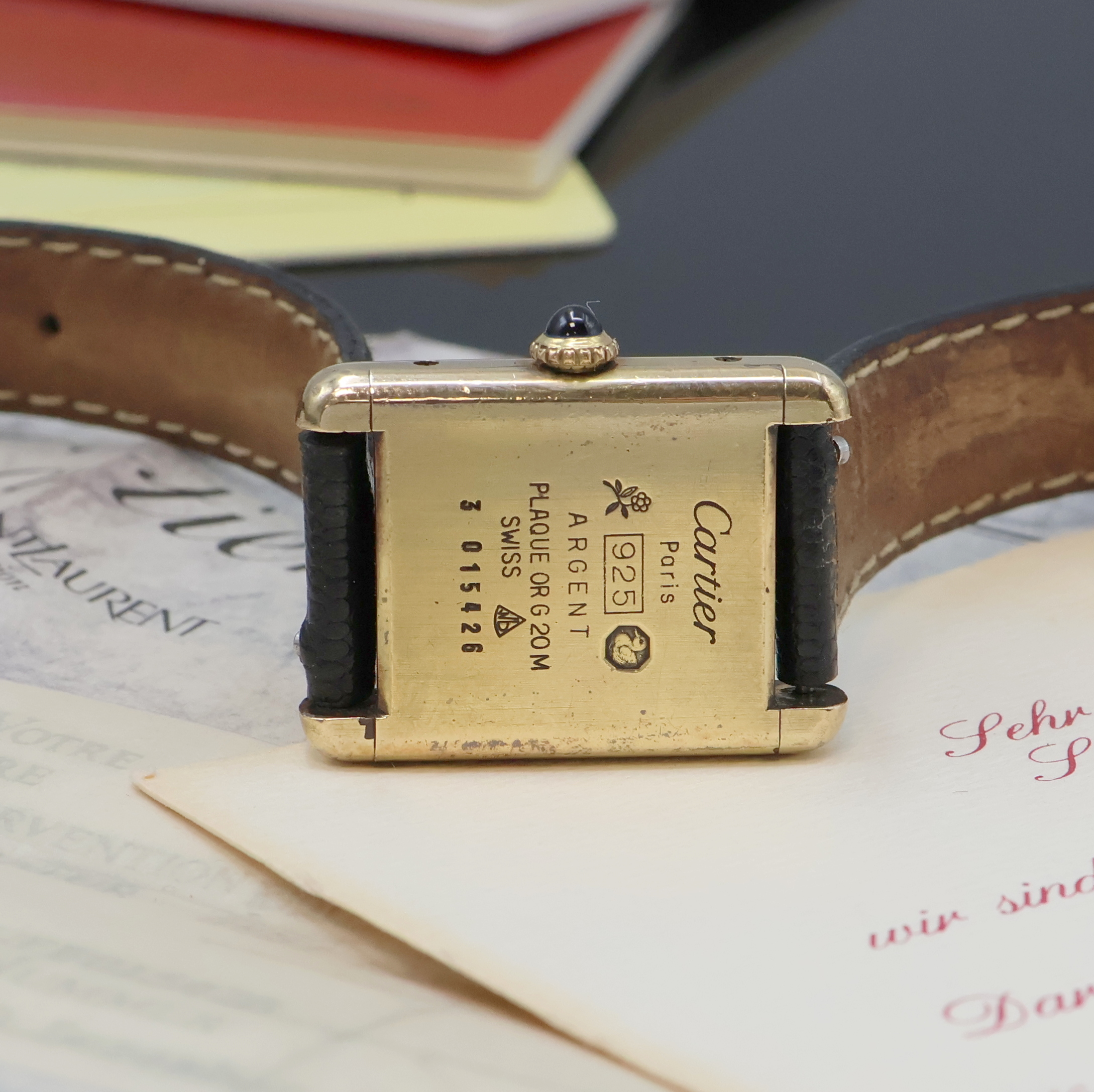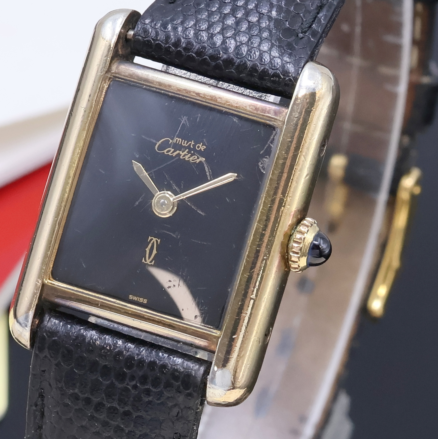 CARTIER Tank Damenarmbanduhr in vergoldeten Sterlingsilber-Gehäuse, Handaufzug,