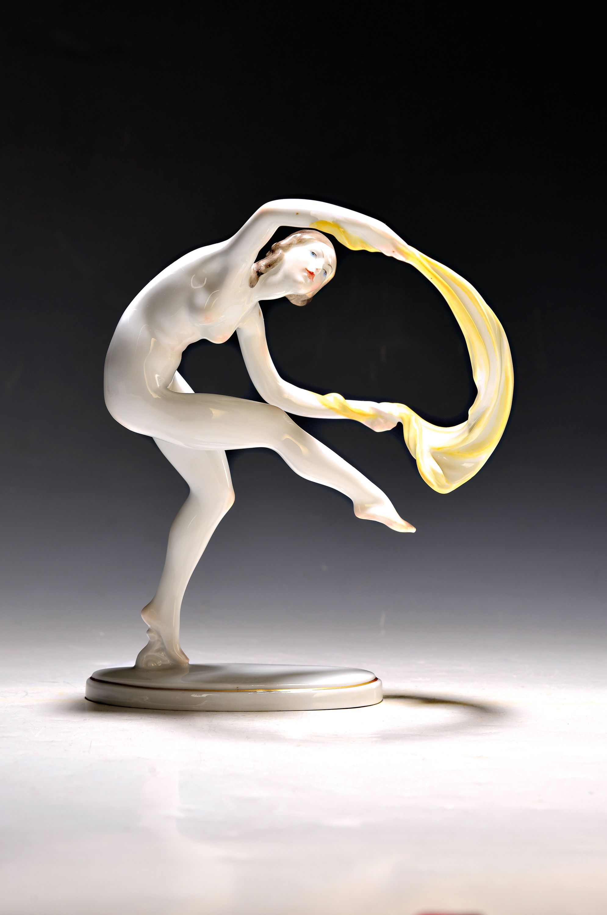 Porzellanfigur, Herend, 20. Jh., Tänzerin mit Tuch, bemalt, ca. 23x19 cm